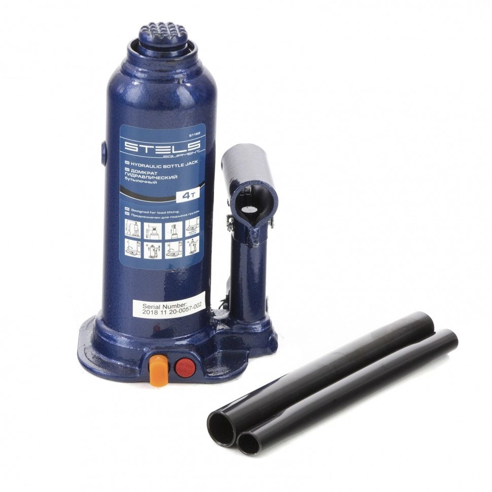 Гидравлический бутылочный домкрат Stels 51162 применяется для быстрого поднятия грузов весом до 4 т на высоту до 363 мм.