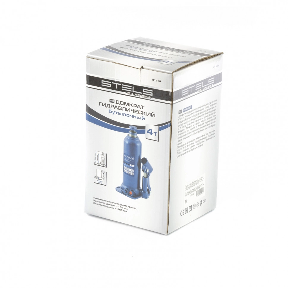 ПроизводителиДомкрат гидравлический бутылочный, 4т, h подъема 188–363мм (51162) STELS