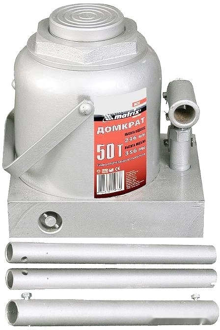 ПроизводителиДомкрат гидравлический бутылочный, 50т, h подъема 240-370мм (50737) MATRIX