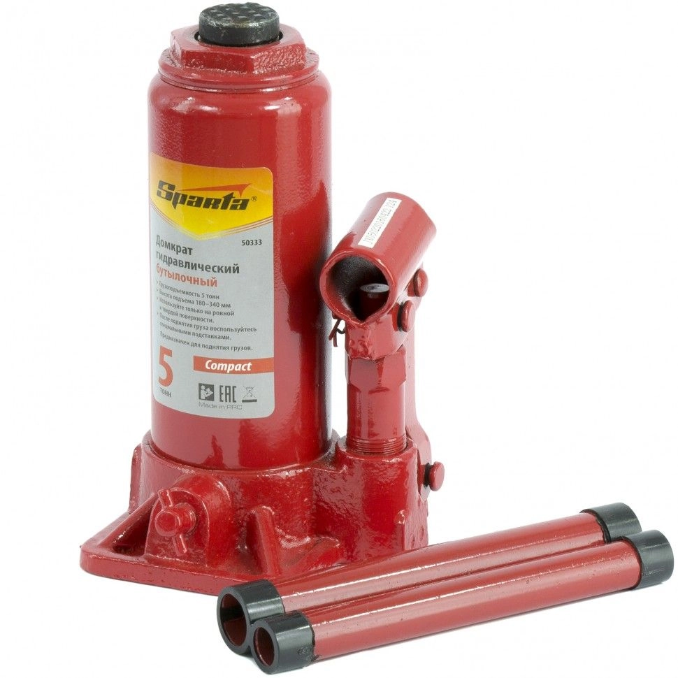 ПроизводителиДомкрат гидравлический бутылочный, 5т, h подъема 180-340мм, Compact (50333) SPARTA