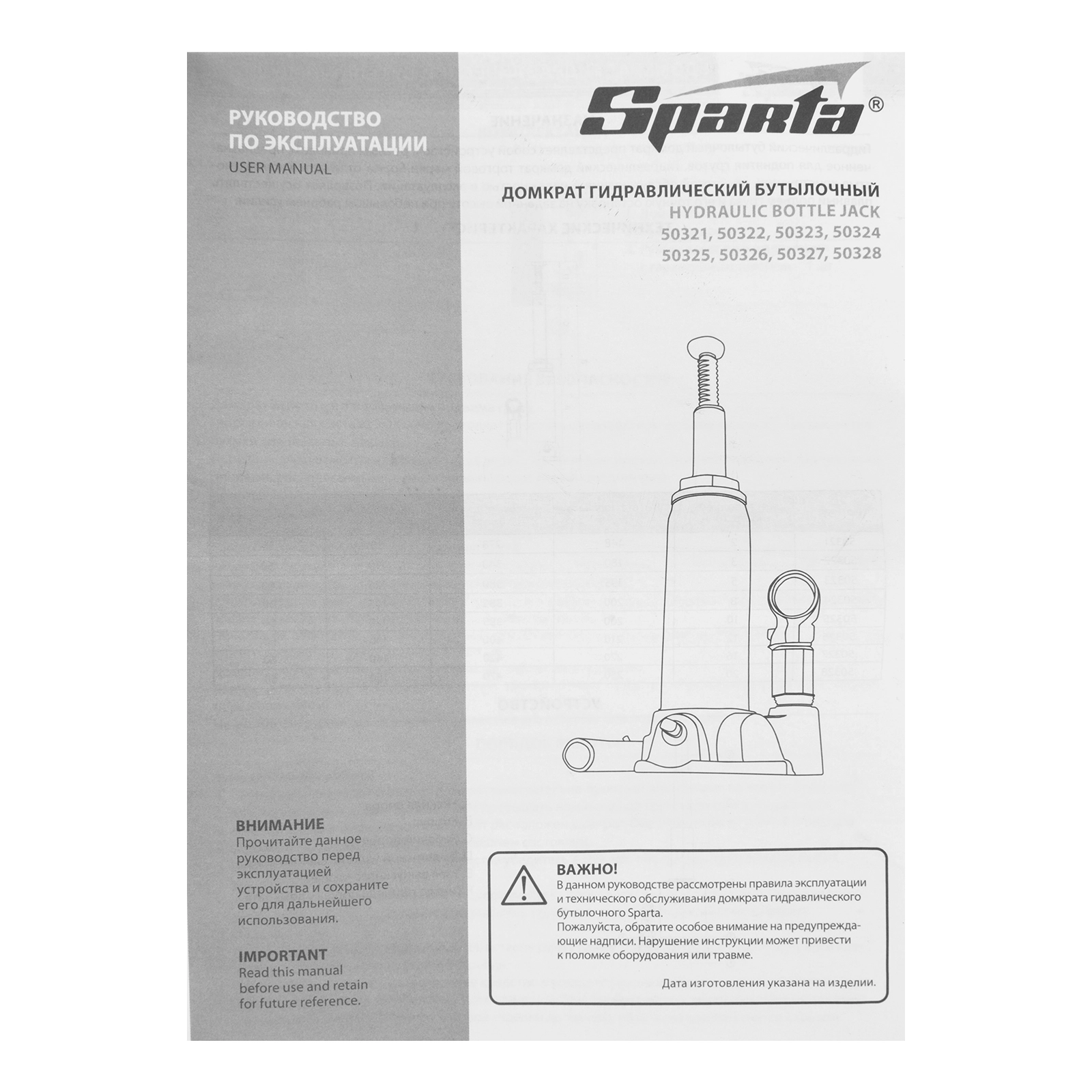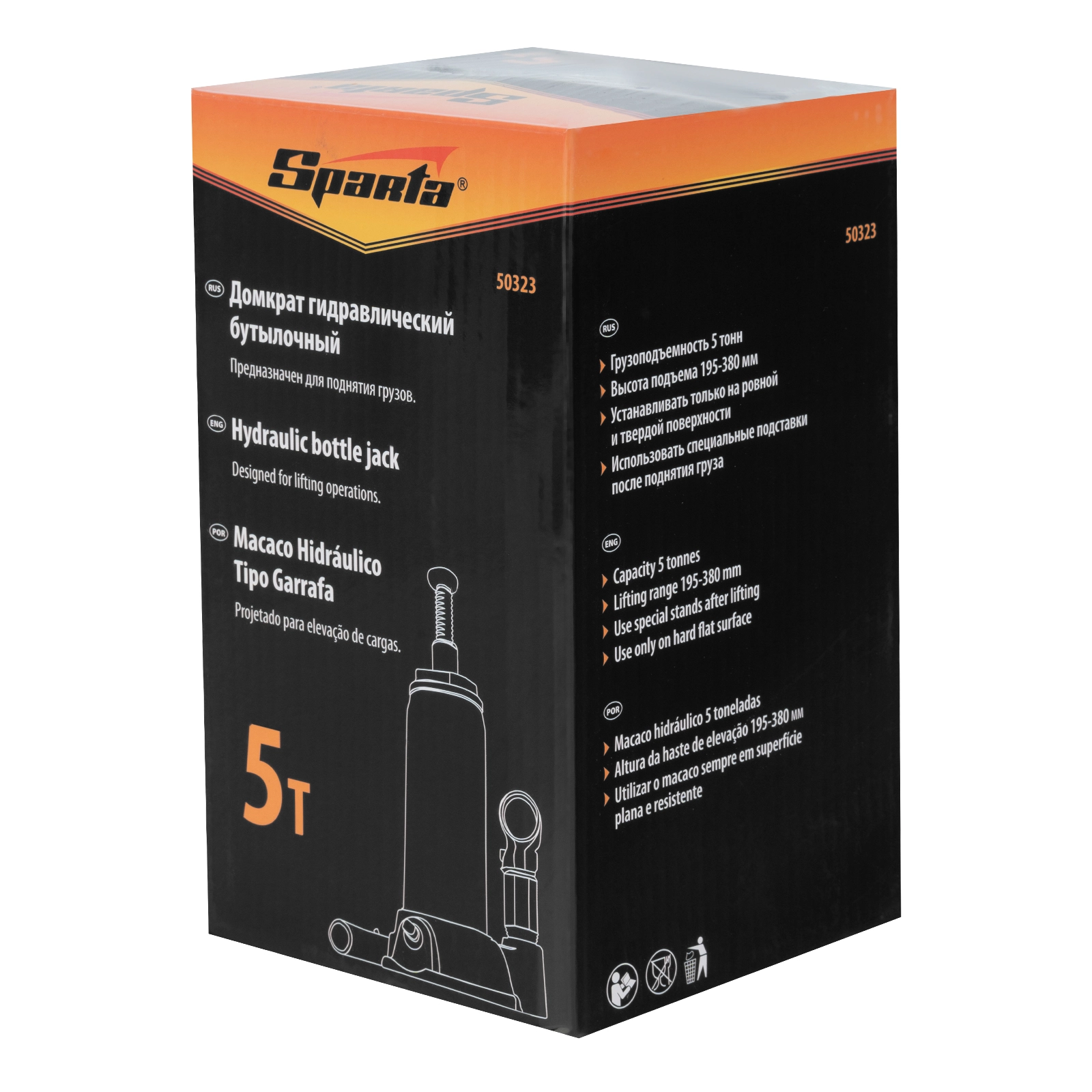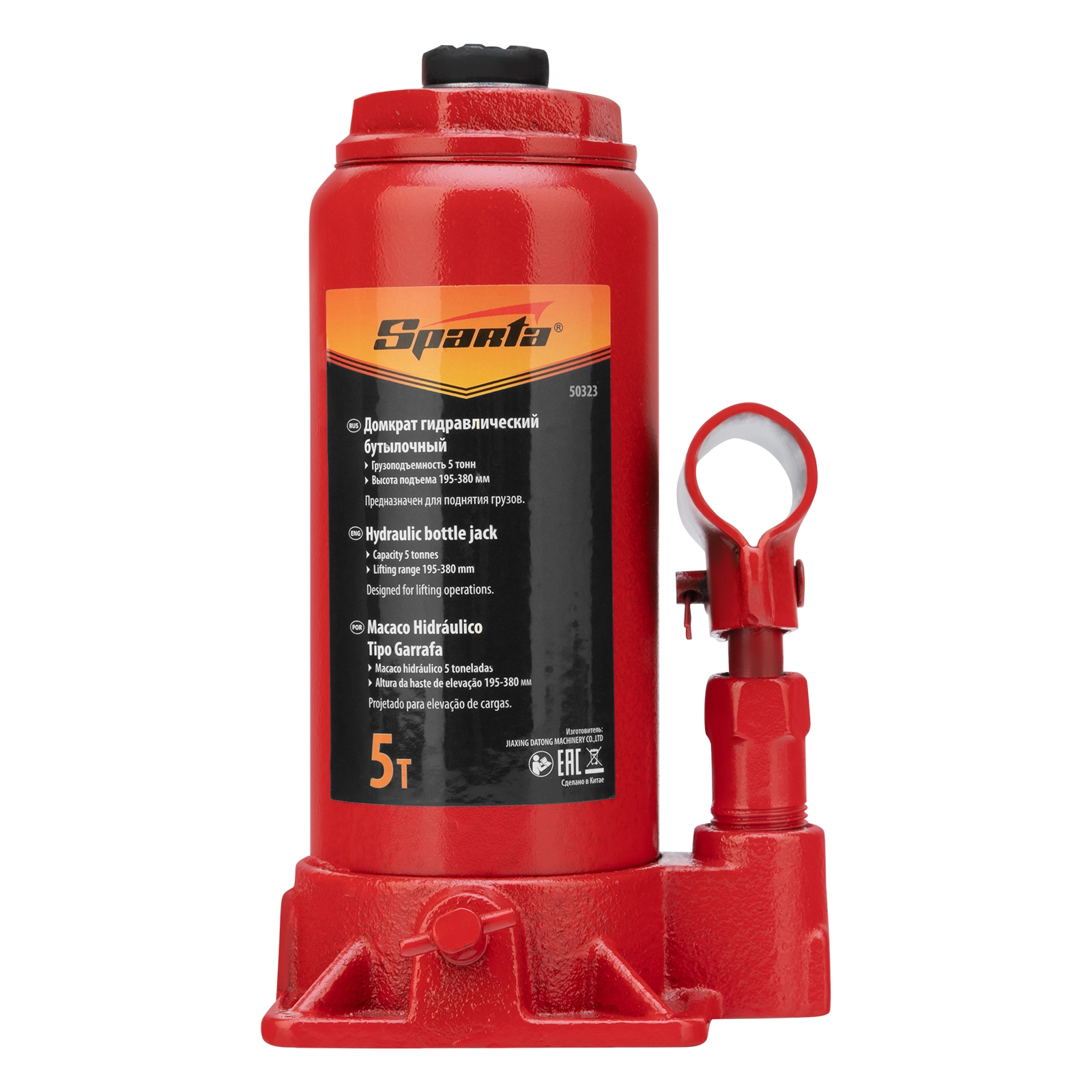 ПроизводителиДомкрат гидравлический бутылочный, 5т, h подъема 195-380мм (50323) SPARTA