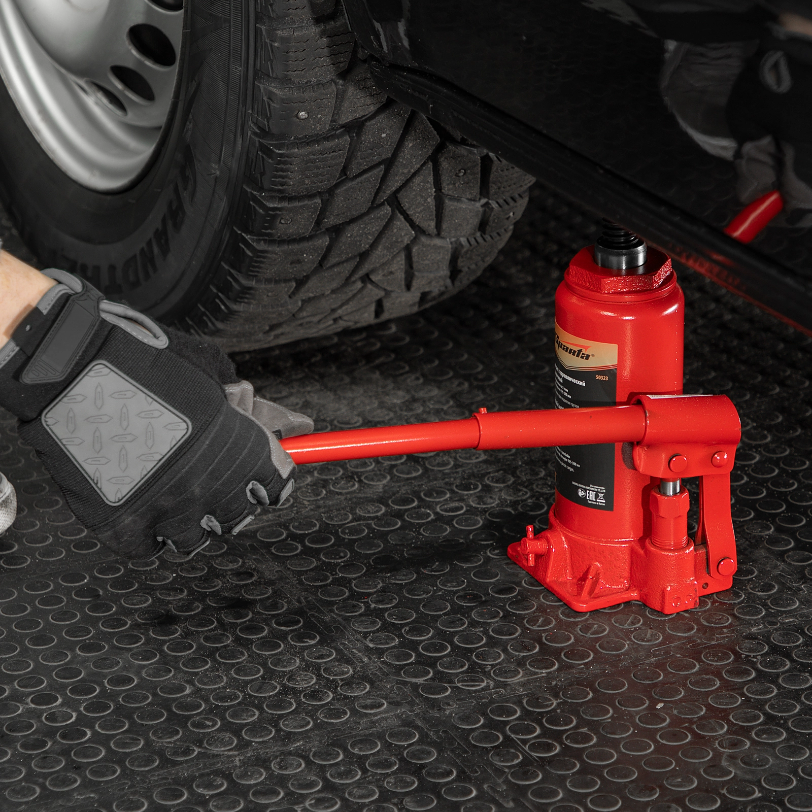 Домкрат обеспечивает плавное поднятие груза и не требует большого усилия от оператора.