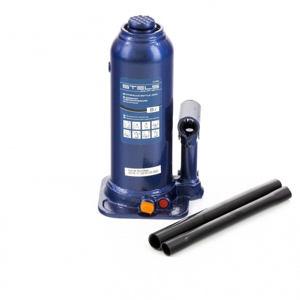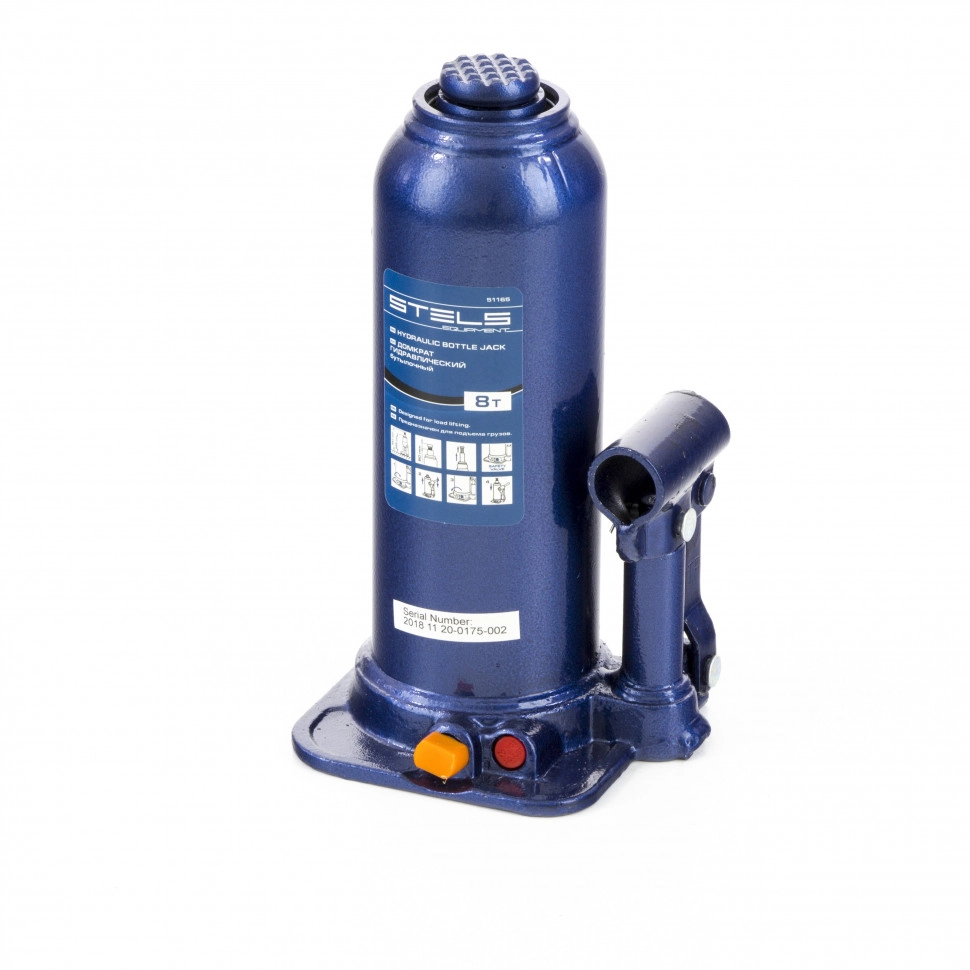 Гидравлический бутылочный домкрат Stels 51165 применяется для быстрого поднятия грузов весом до 8 т на высоту до 447 мм.