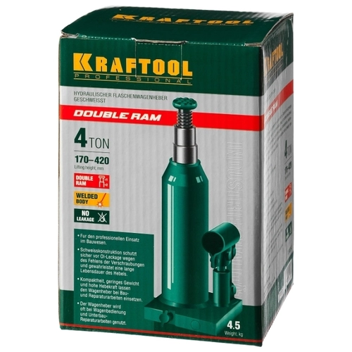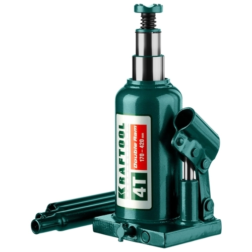 ПроизводителиДомкрат гидравлический бутылочный, сварной, 4т., 170-420 мм, "Double Ram" (43463-4) KRAFTOOL