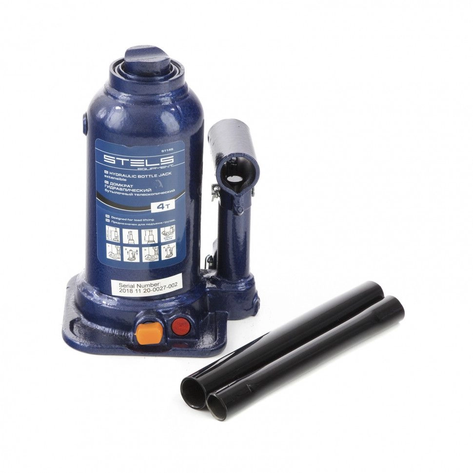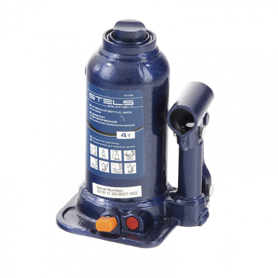Домкрат гидравлический бутылочный телескопический Stels 51145 используется для поднятия грузов весом до 4 т с небольшим рабочим усилием.