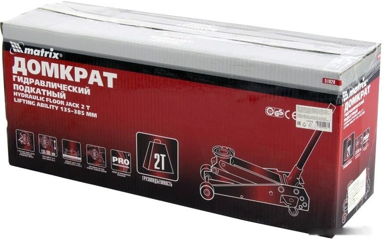 ПроизводителиДомкрат гидравлический подкатной, 2т, h подъема 135–385мм, в пласт. кейсе (51028) MATRIX