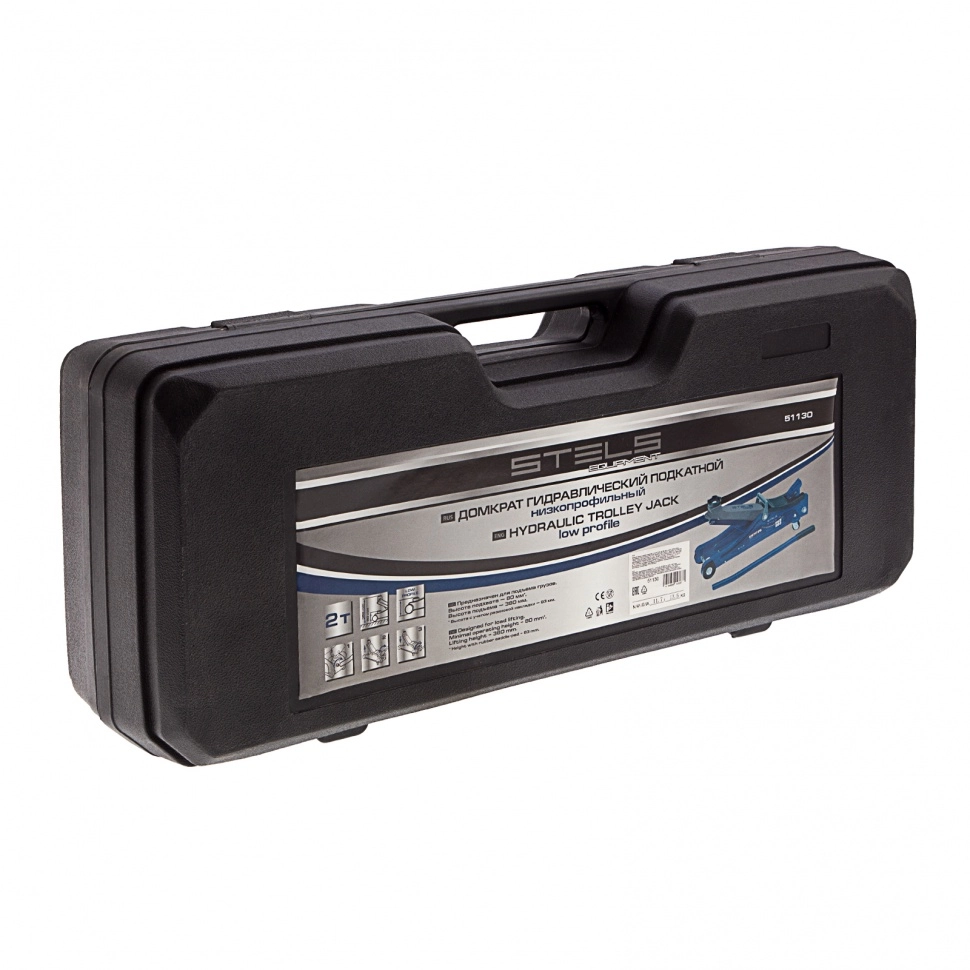 ПроизводителиДомкрат гидравлический подкатной, 2т Low Profile, 80-380мм, в пласт. кейсе (51130) STELS
