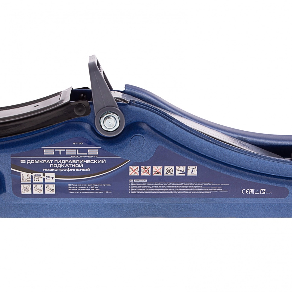 Гидравлический подкатной домкрат Stels Low Profile 51130, 80-380 мм, предназначен для подъема грузов массой до 2 т.
