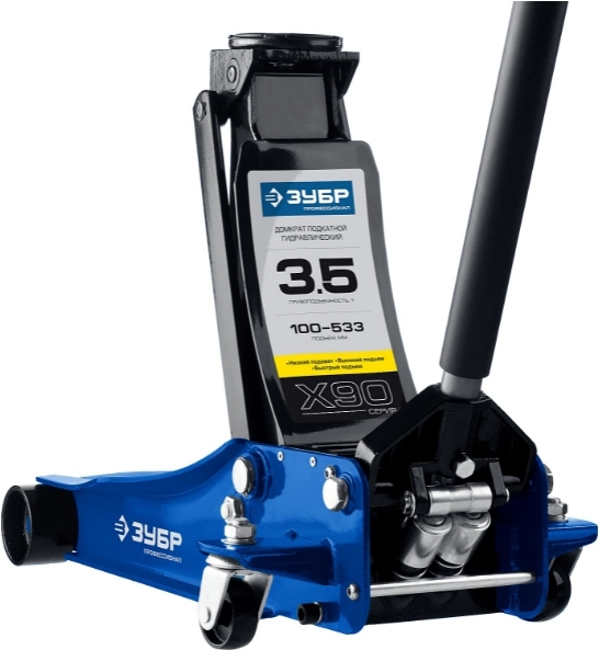 ПроизводителиДомкрат гидравлический подкатной, 3.5т., 100-533 мм, X90 "Профессионал" (43054-3.5) ЗУБР