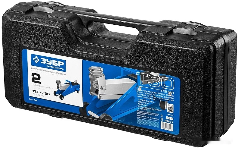 ПроизводителиДомкрат гидравлический подкатной, 2т., 135-330 мм, в кейсе, T30 "Профессионал" (43053-2-K) ЗУБР