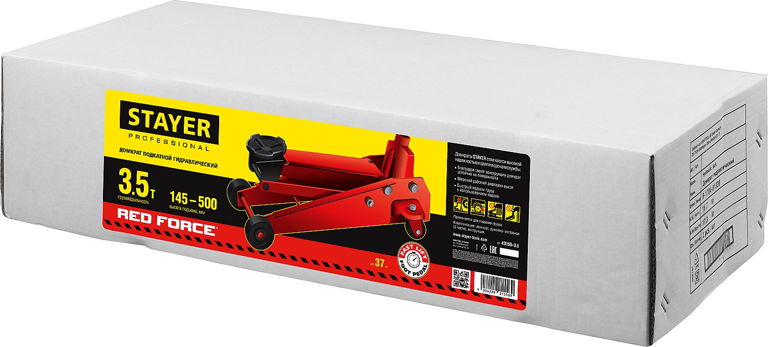 ПроизводителиДомкрат гидравлический подкатной, 3.5т., 145-500 мм RED FORCE "Professional" (43155-3.5) STAYER