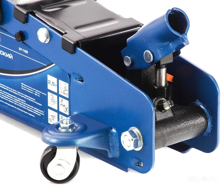 Удобная рукоятка позволяет переносить домкрат с места на место.