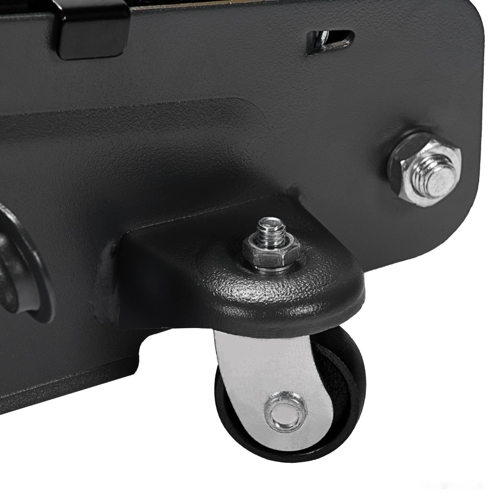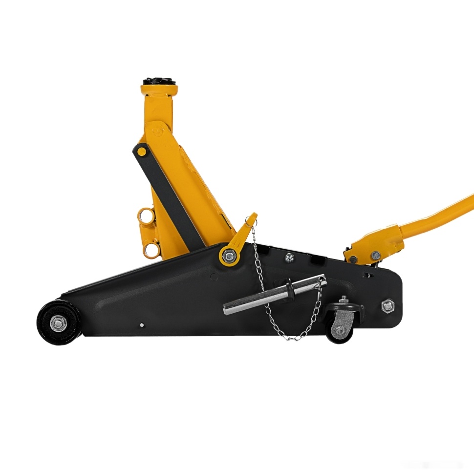 Удобная рукоятка позволяет переносить домкрат с места на место и в случае необходимости переставляется на заднюю часть для удобного выкатывания из под автомобиля.