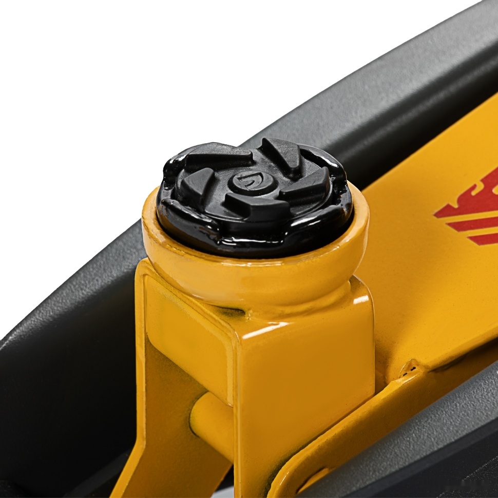 Модель оснащена фиксатором, позволяющем блокировать опускание подъемного рычага.