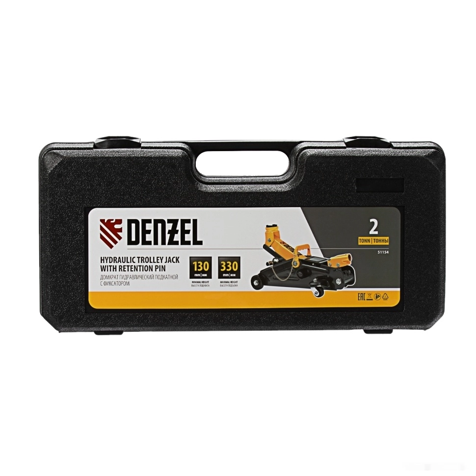 ПроизводителиДомкрат гидравлический подкатной с фиксатором, 2т, 130-330мм, в кейсе (51154) DENZEL