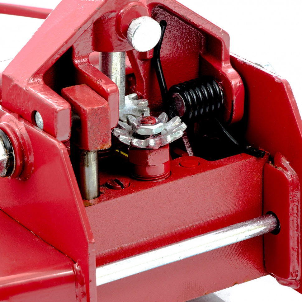 Домкрат снабжен поворотной рукояткой, при помощи которой его можно перемещать.