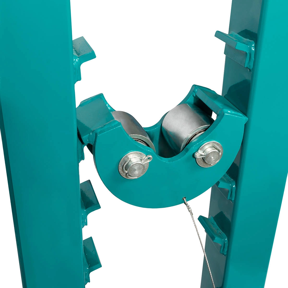 Стойки имеют 7 фиксированных положений высоты оси, что позволяет работать с кабельными катушками различного диаметра