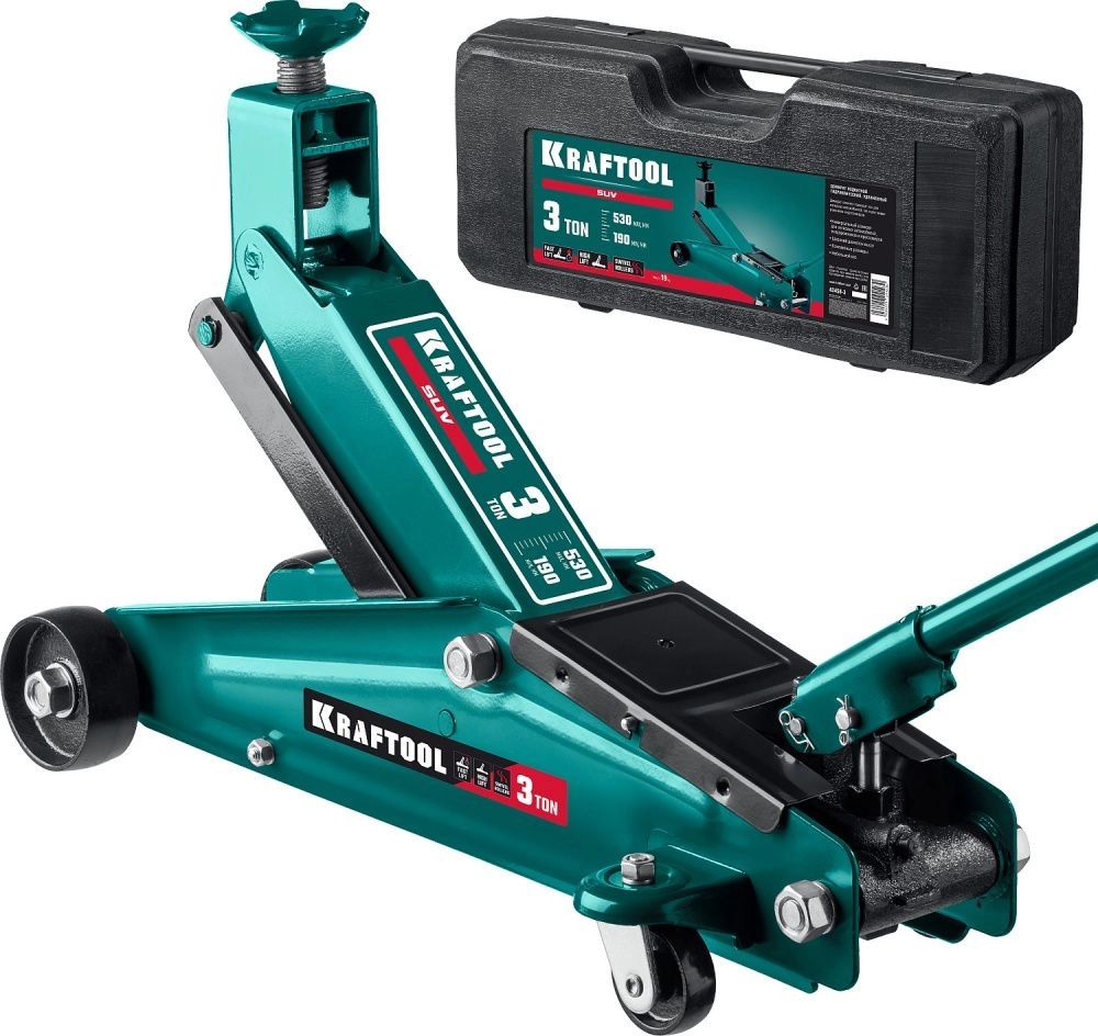 ПроизводителиДомкрат подкатной с высоким подъемом 3т, 190-530мм, в кейсе "SUV" (43458-3-K) KRAFTOOL