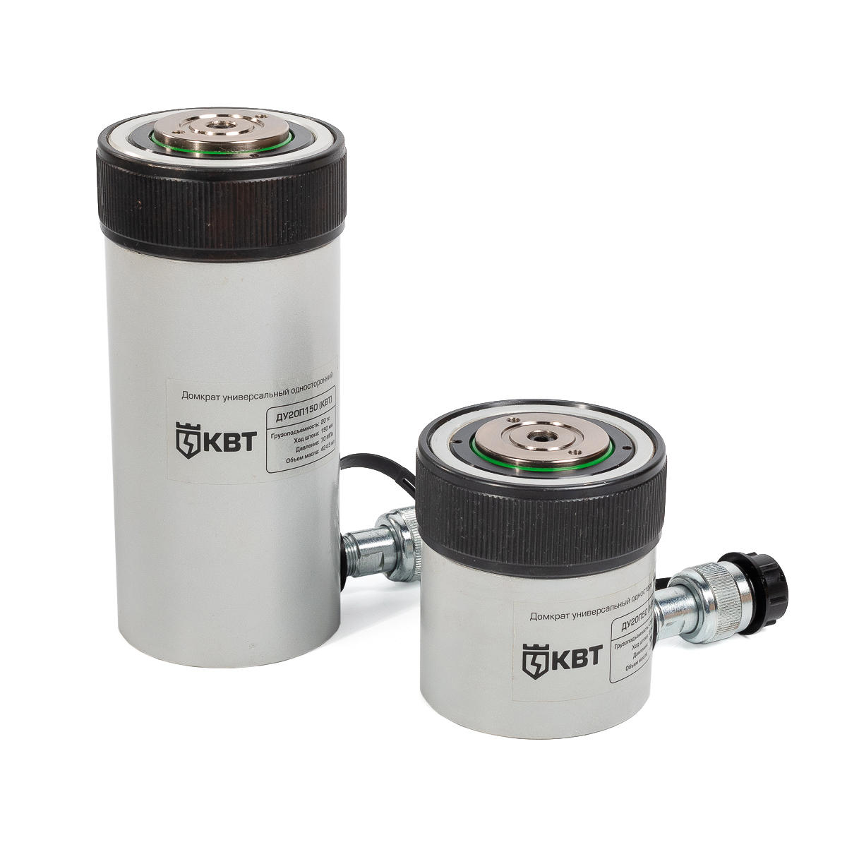 Универсальный односторонний домкрат КВТ ДУ20П100 84564 имеет пружинный возврат штока