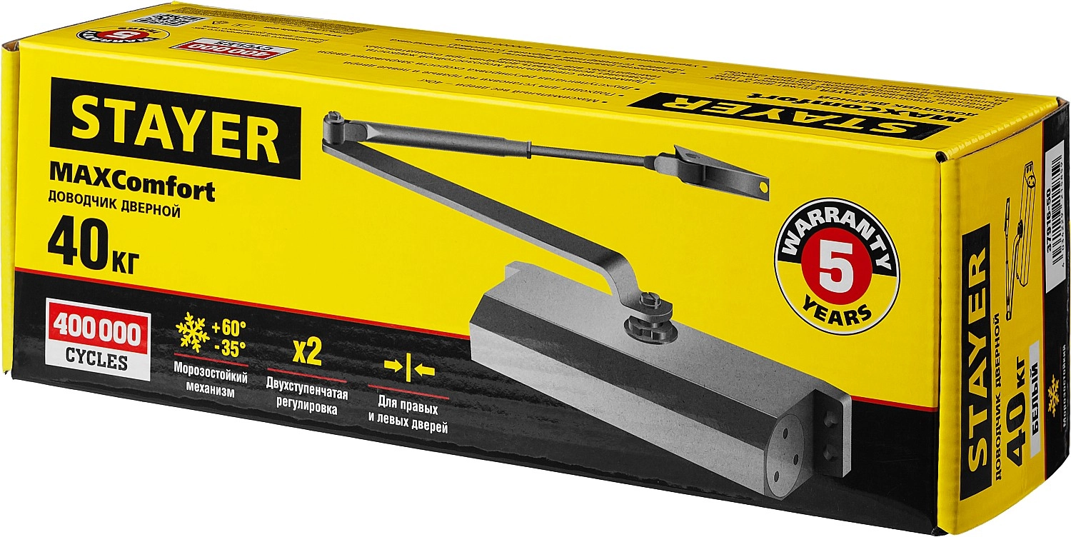 Дверные доводчики STAYER служат для автоматического закрывание дверей различного типа. Выполнены при непрерывном контроле качества, чем обеспечивается длительный срок службы и надежность изделия.