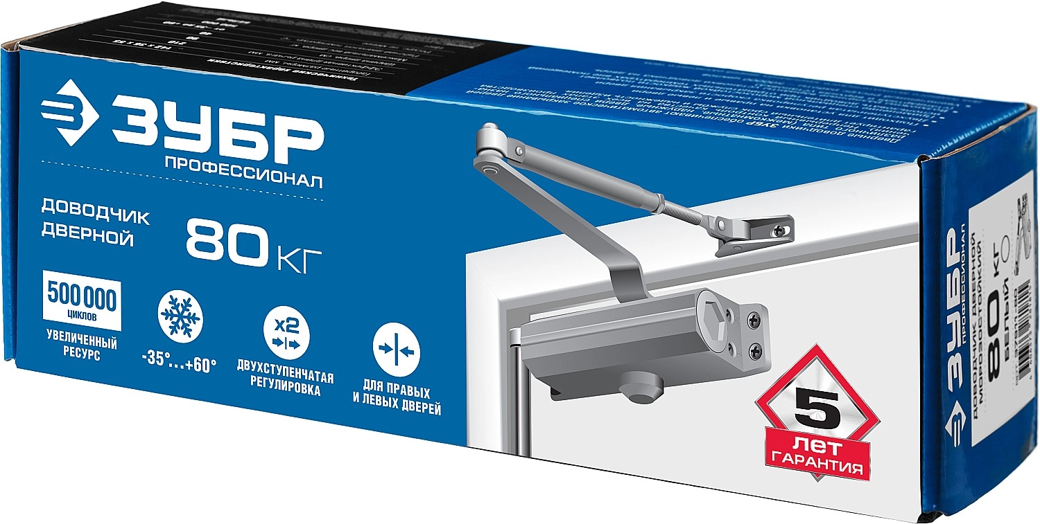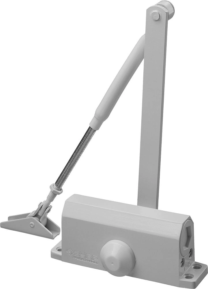 ПроизводителиДоводчик дверной "ПРОФЕССИОНАЛ", для дверей массой до 80 кг, цвет белый (37911-80) ЗУБР