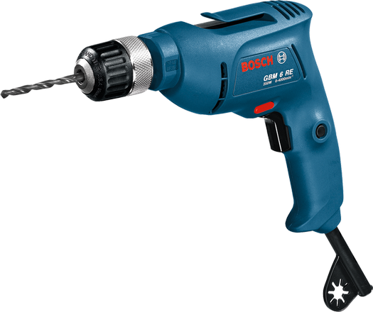 ПроизводителиДрель GBM 6 RE (450 Вт, до 6 мм в мет., 1 скор., патрон БЗП, кор.)(0 601 472 600) BOSCH