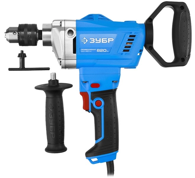 ХарактеристикиАртикул ЗДМ-820 РМБренды ЗубрСтрана производства РоссияТип дрель-миксерПотребляемая мощность 820Макс. крутящий момент 50Макс. диаметр сверления, дерево 36Макс. диаметр сверления, металл 13Диаметр патрона 13Скорость вращения 650Режимы работы сверлениеВес 3000Питание сетьПатрон ключевойРегулировка скорости вращения электроннаяРеверс естьБлокировка кнопки включения естьКлюч для патрона естьОписание товара обновлено 08.12.2025 14:11:05Профессиональное изделие в линейке удобного и производительного инструмента ЗУБР для сверления отверстий в различных материалах, а также для перемешивания жидких растворов ЛКМ. Сочетая в себе эргономичный дизайн и отличные характеристики, дрель-миксер станет Вашим верным помощником в работе