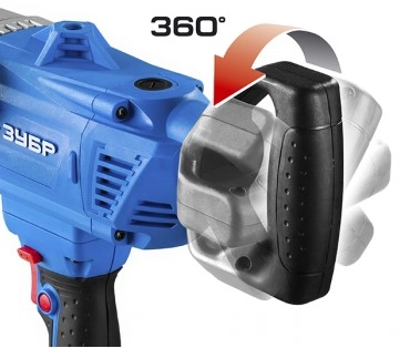 - Дополнительная эргономичная рукоятка с возможностью установки в двух положениях позволяет надежно удерживать мощное изделие при любой работе;