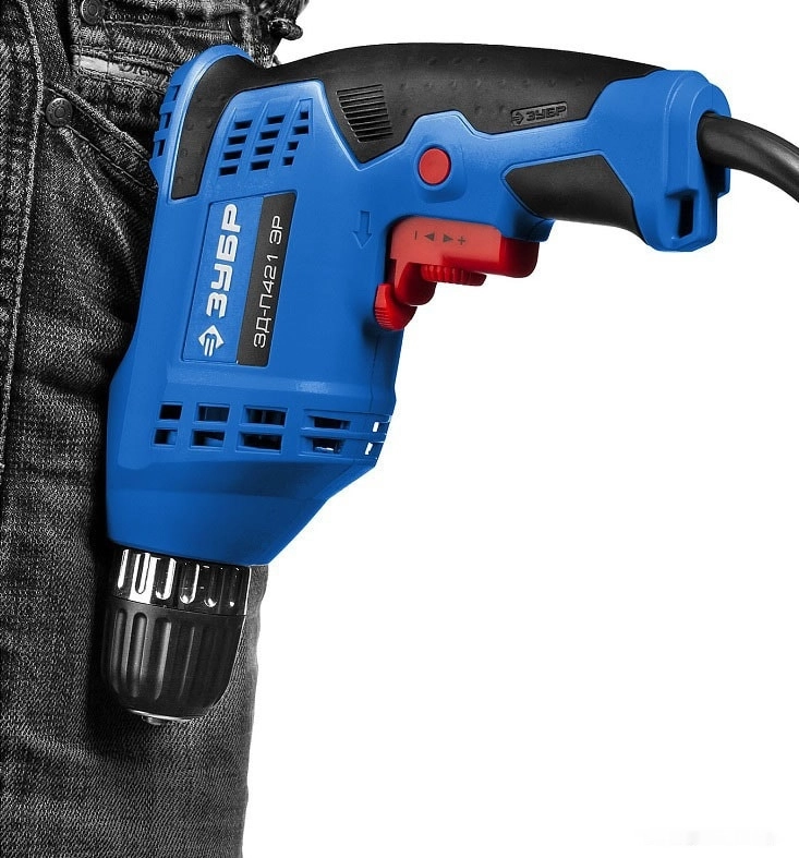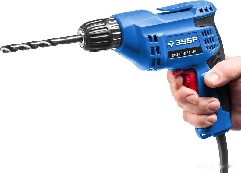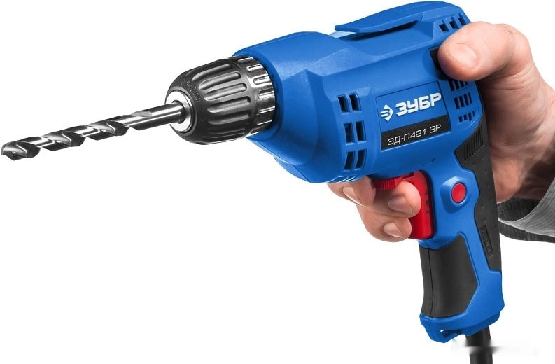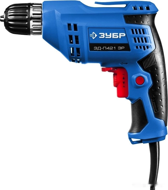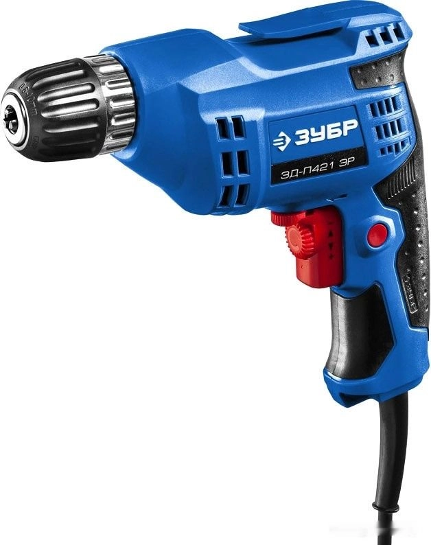 ПроизводителиДрель ЗД-П421 ЭР (420 Вт, до 10 мм в мет., 1 скор., патрон ЗВП, кор.) ЗУБР