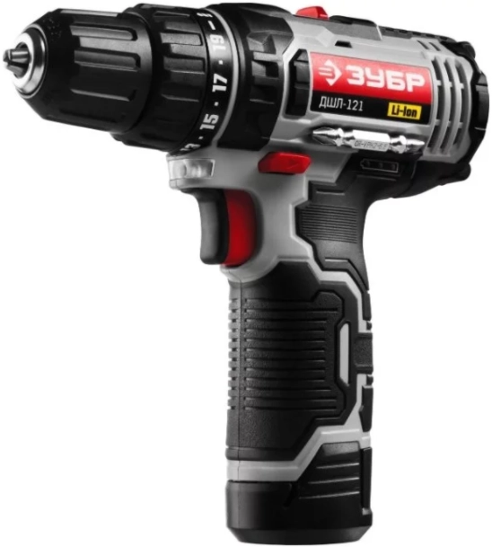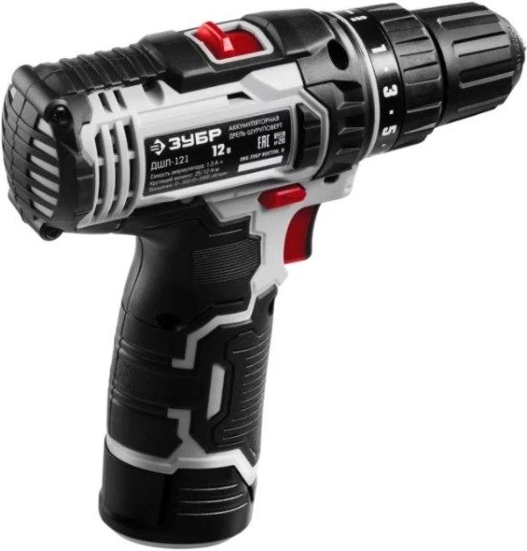 СТАНДАРТУровень качества. При классификации продуктов, имеющих схожее наименование, но обладающие различными потребительскими свойствами мы приняли следующий Вес факторов: 80% - подтвержденный ресурс, 15% - заявленная производительность/скорость, 5% - субъективные ощущения потребителя. ПодробнееКод товара: 0031595Новый недорогой шуруповерт ЗУБР - помощник в сверлении и заворачивании. Значительный крутящий момент позволяет использовать его для широкого спектра задач. С индикацией заряда Вы никогда не забудете зарядить его, чтобы он был готов к работе в любой моментХарактеристикиАртикул ДШЛ-121Бренды ЗубрСтрана производства КитайАккумуляторная система ЗУБР Li-Ion C1Тип безударная дрель-шуруповертМакс. крутящий момент 25Мин. крутящий момент, Н/м 12Число оборотов холостого хода 1300Напряжение аккумулятора 12Макс. диаметр сверления, дерево 21Макс. диаметр сверления, металл 10Диаметр патрона 0.8-10Скорость вращения 1300Цвет серый/черныйЕмкость аккумулятора 1.3Материал корпуса металл/пластикКейс в комплекте нетРежимы работы сверлениеАккумулятор в комплекте ДаВес 1000Питание аккумуляторПатрон быстрозажимнойДополнительный аккумулятор естьДлина 275Режимы скорости вращения 2Ширина 82Высота 242Реверс естьДополнительная рукоятка нетКейс естьПылесборник нетПодсветка естьЗарядное устройство естьСверла естьФиксация шпинделя ДаРегулировка крутящего момента 20Описание товара обновлено 08.12.2025 14:08:53Новый недорогой шуруповерт ЗУБР - помощник в сверлении и заворачивании. Значительный крутящий момент позволяет использовать его для широкого спектра задач. С индикацией заряда Вы никогда не забудете зарядить его, чтобы он был готов к работе в любой момент