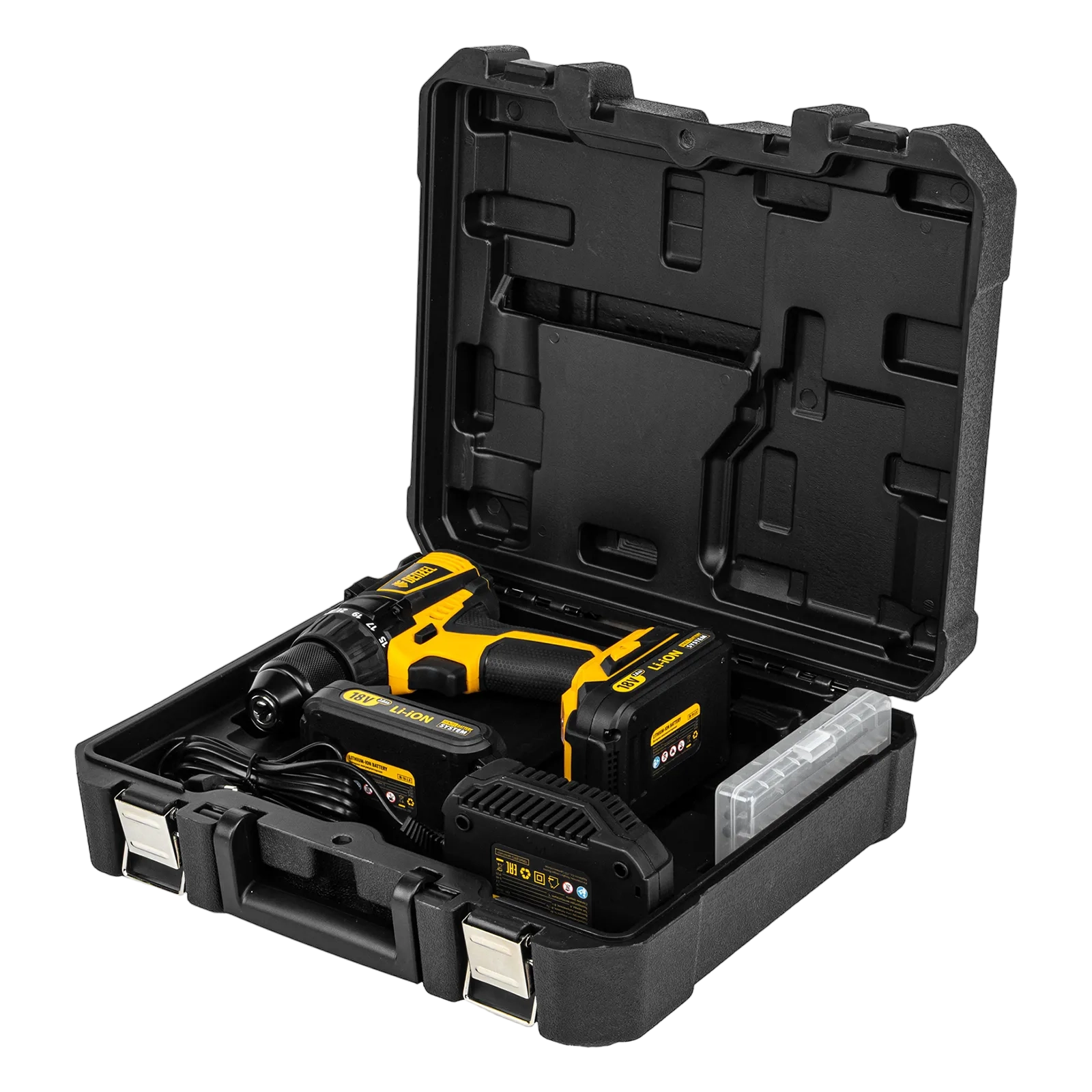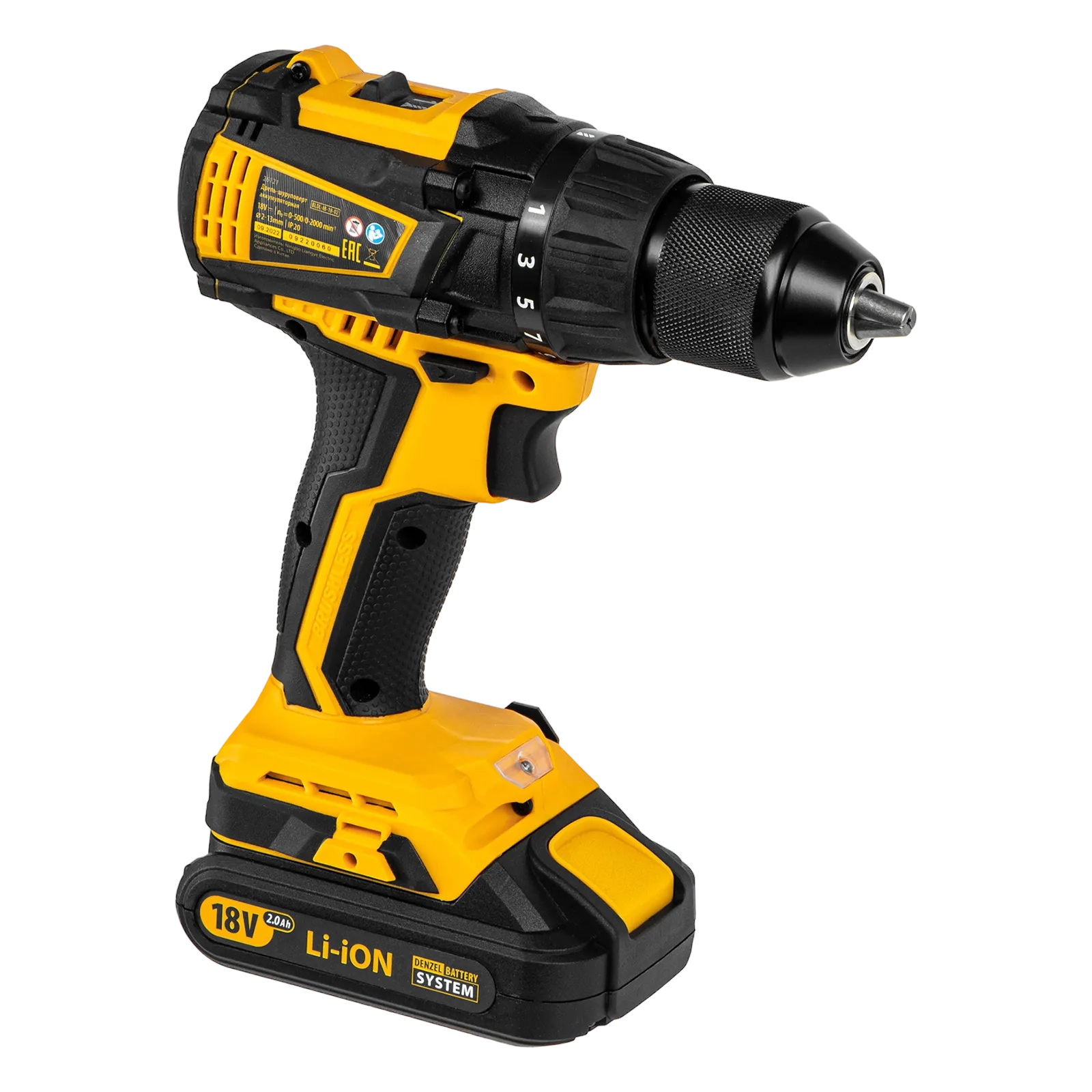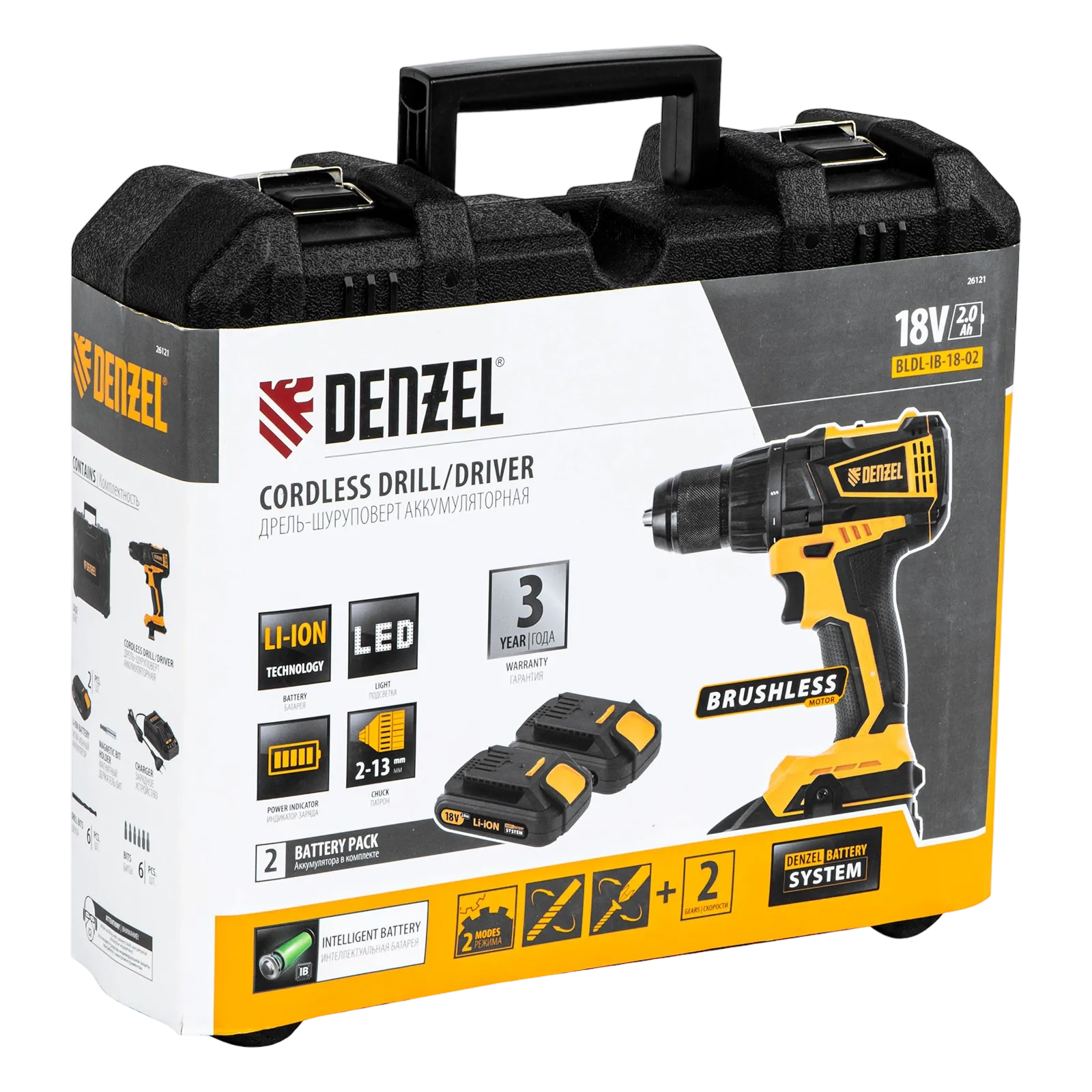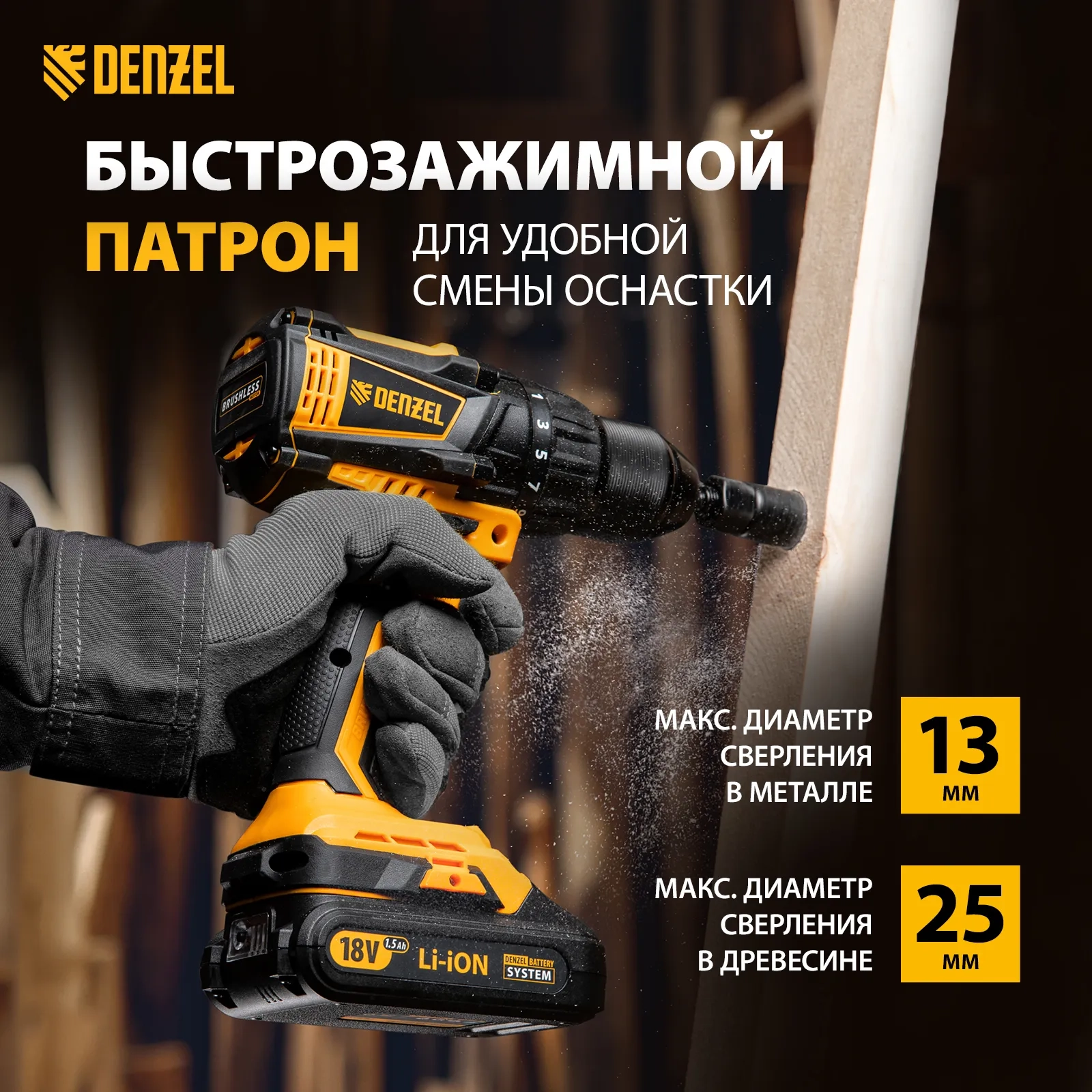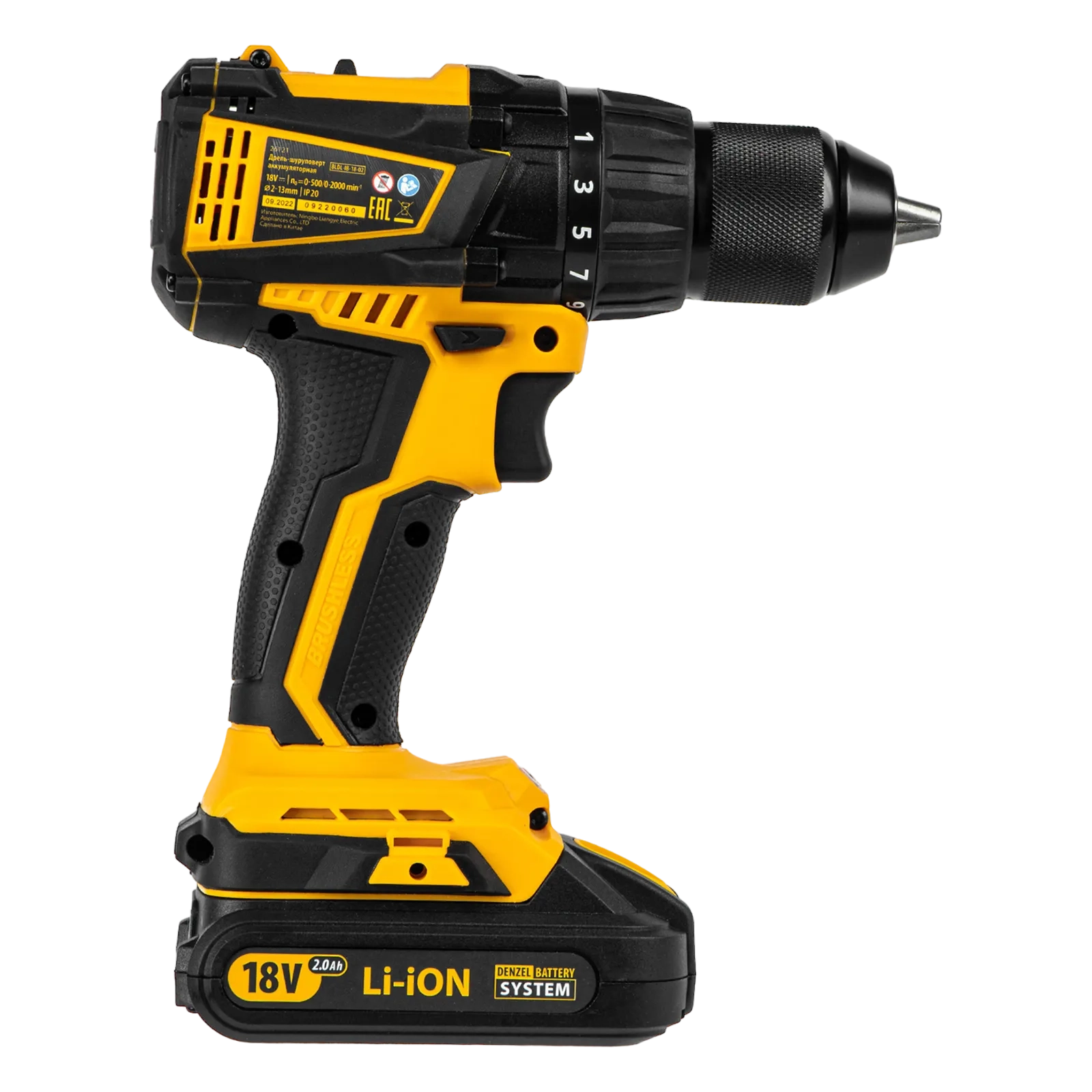 ПроизводителиДрель-шуруповерт аккум. бессч. (18.0 В, 2 аккум. х 1.5 А/ч, 65 Нм, чем.) (26121) DENZEL