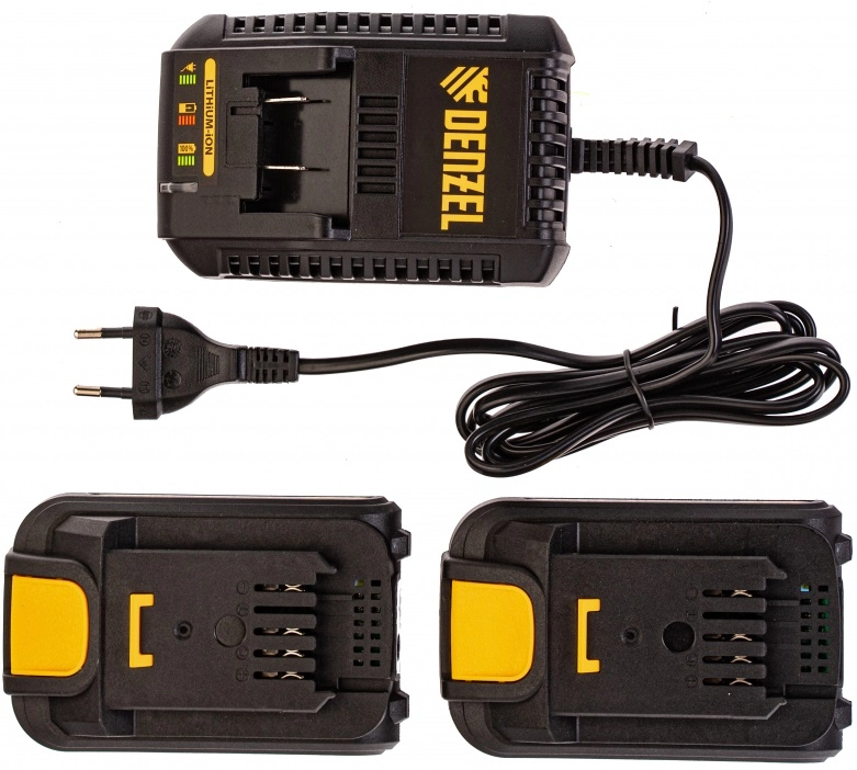 - Универсальность — инструмент совместим с любым Li-Ion аккумулятором и зарядным устройством единой платформы Denzel Battery System 18V.