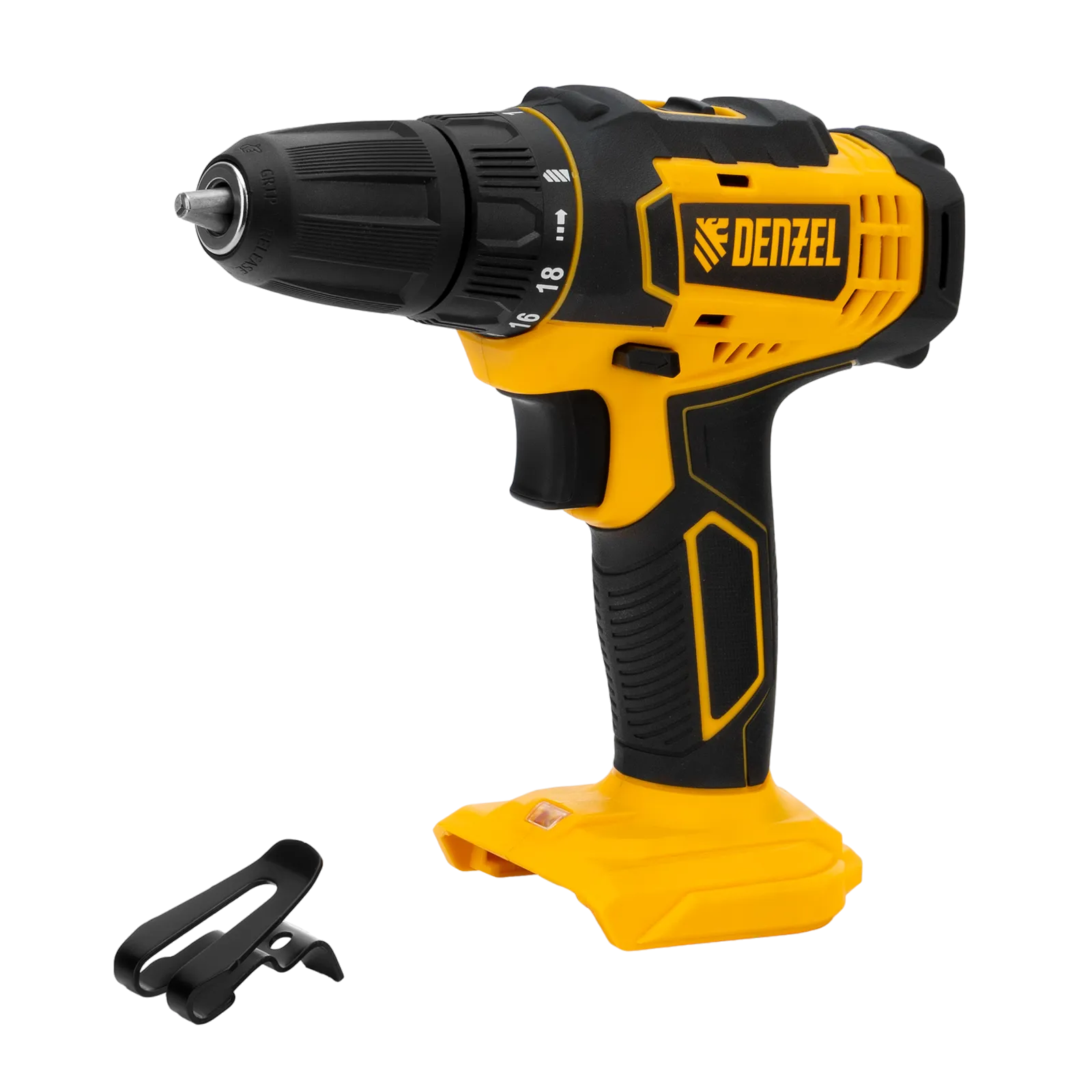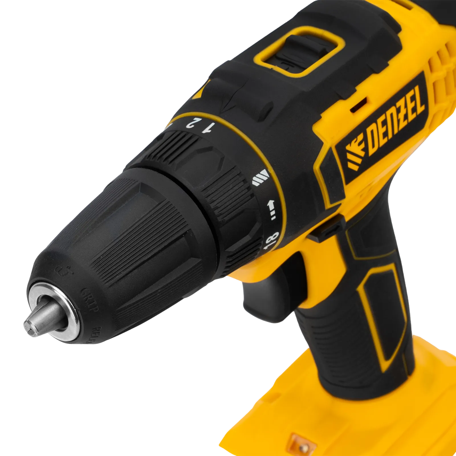 - Универсальность — дрель-шуруповерт совместима с любым Li-Ion аккумулятором единой платформы Denzel Battery System 18V.