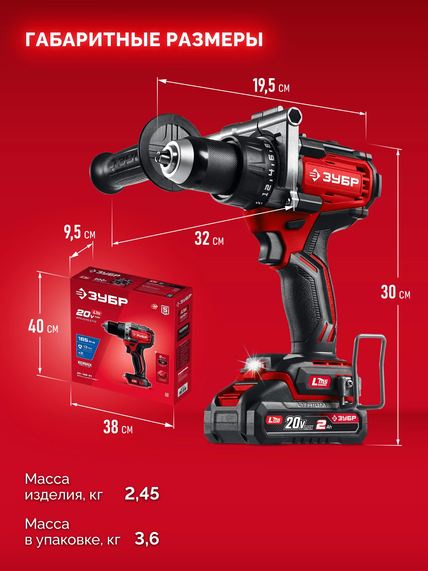 ПроизводителиДрель-шуруповерт аккум. ДБ-165-21 (LMS) (20.0 В, 1 акк. х 2.0 А/h, 165 Нм, кор.) ЗУБР