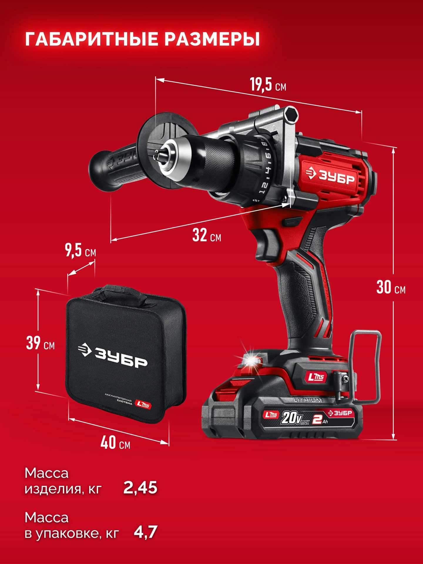 ПроизводителиДрель-шуруповерт аккум. ДБ-165-22 (LMS) (20.0 В, 2 акк. х 2.0 А/h, 165 Нм, сум.) ЗУБР
