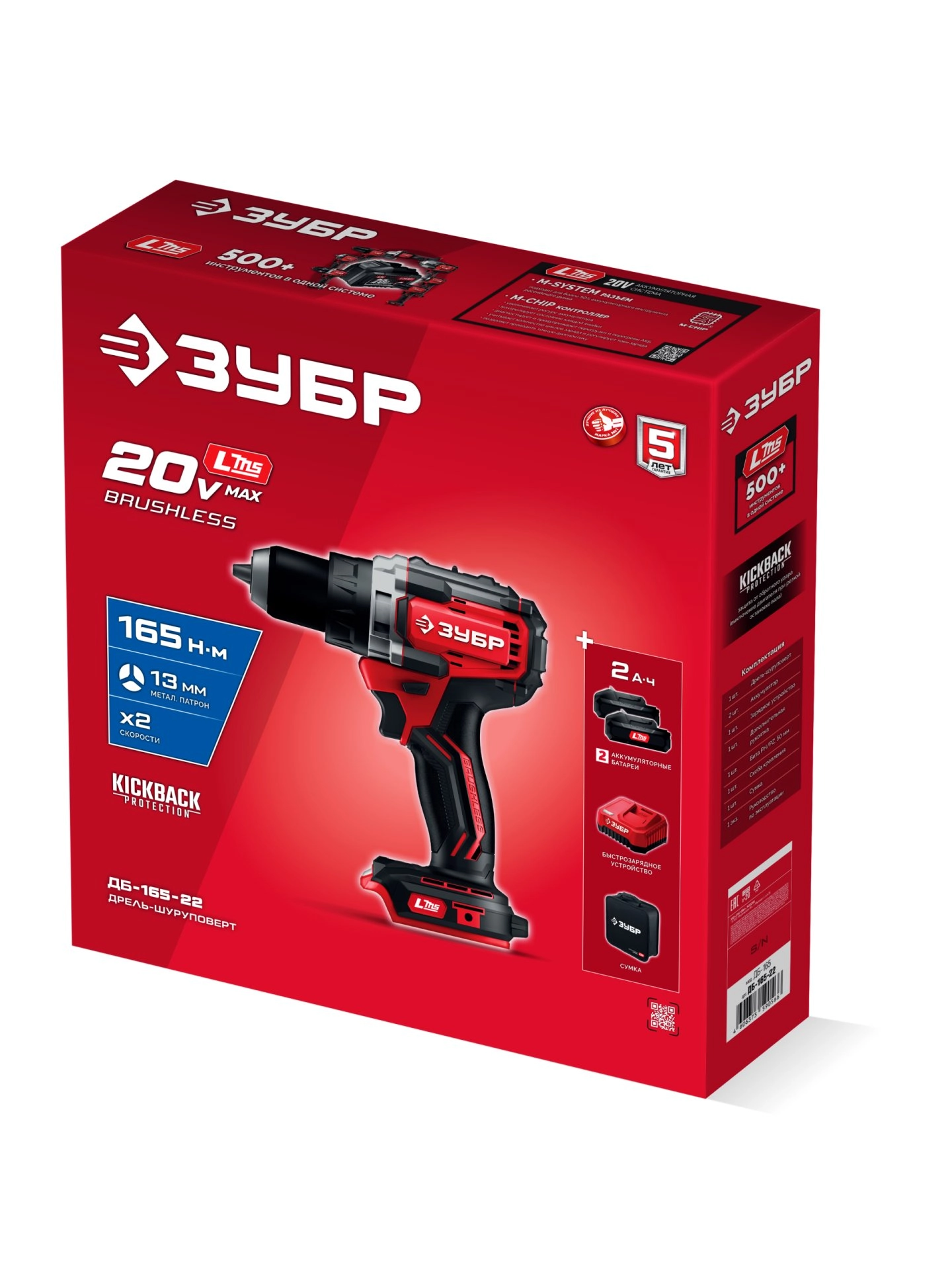 Бесщеточная дрель-шуруповерт ЗУБР системы LMS с максимальным крутящим моментом 165 Нм предназначена для работы с самым крупным крепежом (саморезы до 12 мм диаметром) и сверления отверстий до 40 мм в дереве. Встроенная защита от обратного удара предотвращает повреждение кисти при резкой блокировке вала. Комплектация с двумя аккумуляторами позволяет работать практически без остановки.Производитель: Крафтул И/Е Гмбх, Альтер Поствег Штр., Лоенинген, Германия