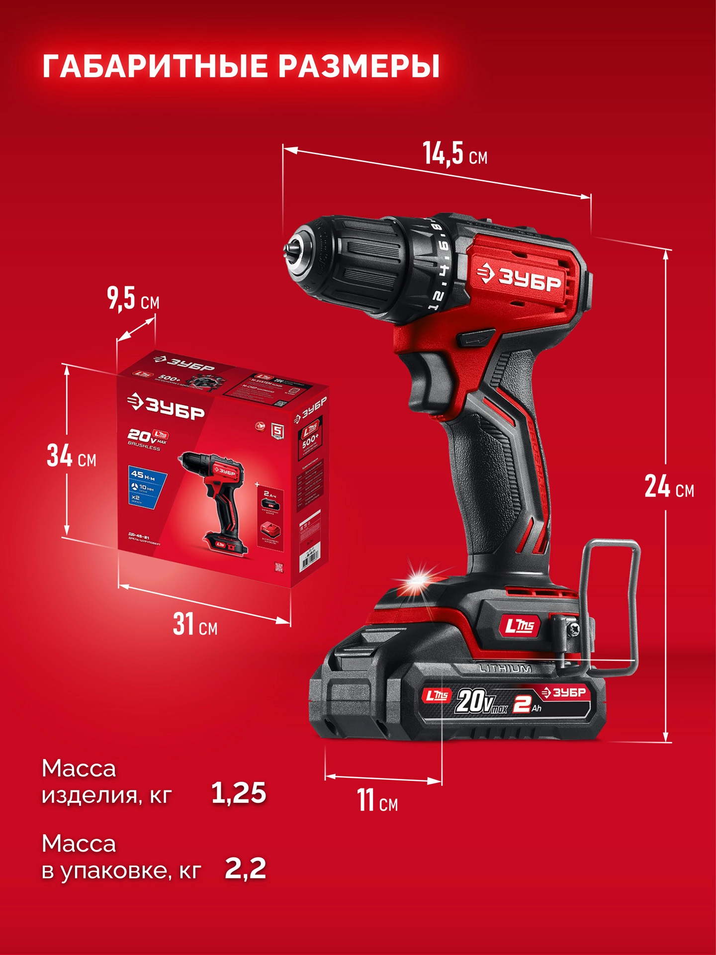 ПроизводителиДрель-шуруповерт аккум. ДБ-45-21 (LMS) (20.0 В, 1 акк. х 2 А/h Li-Ion, 45 Нм, кор.) ЗУБР
