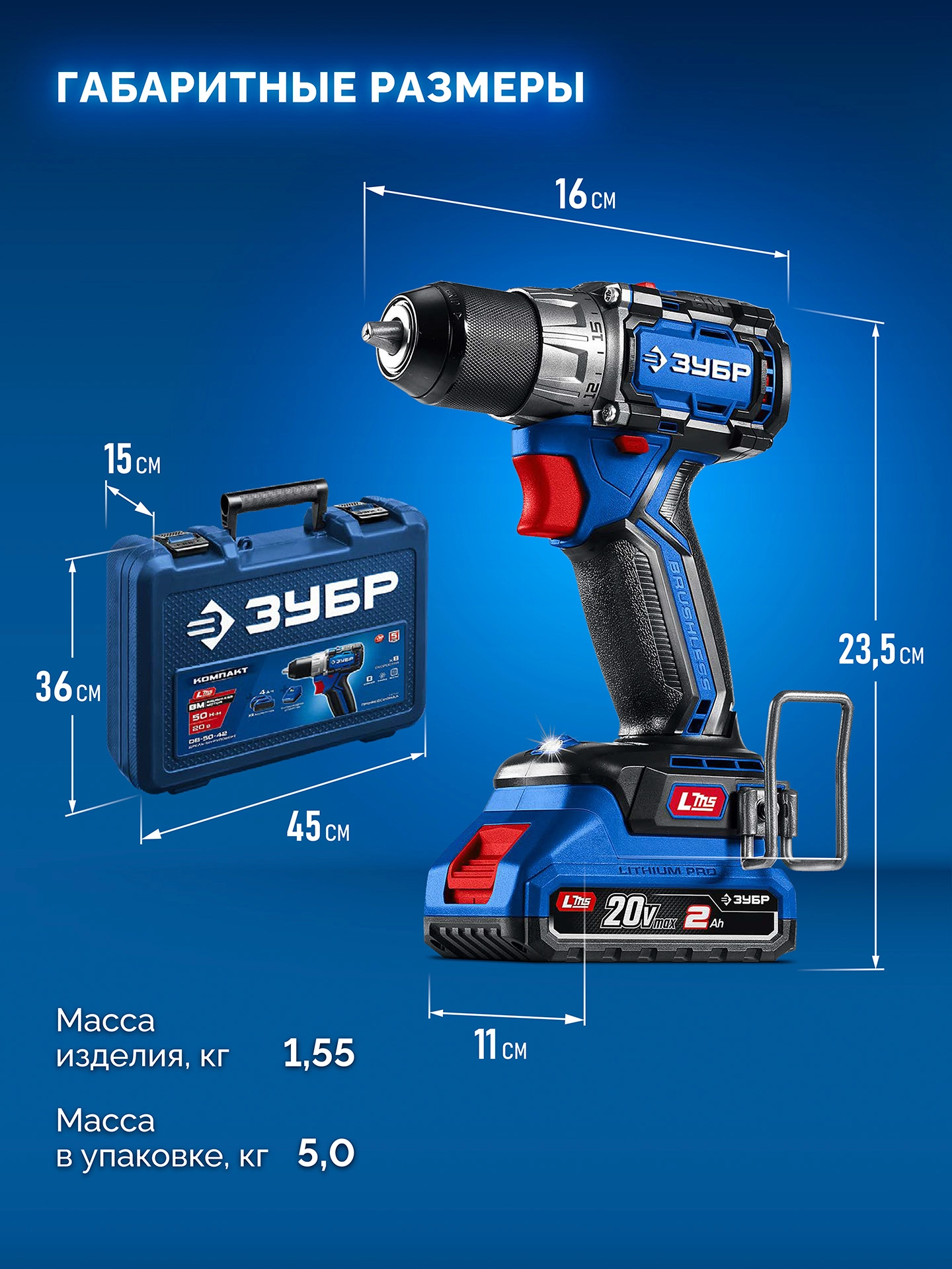 ПроизводителиДрель-шуруповерт аккум. DB-50-22 (LMS) (20.0 В, 2 акк. х 2.0 A/h Li-Ion, 50 Нм, чем.) ЗУБР
