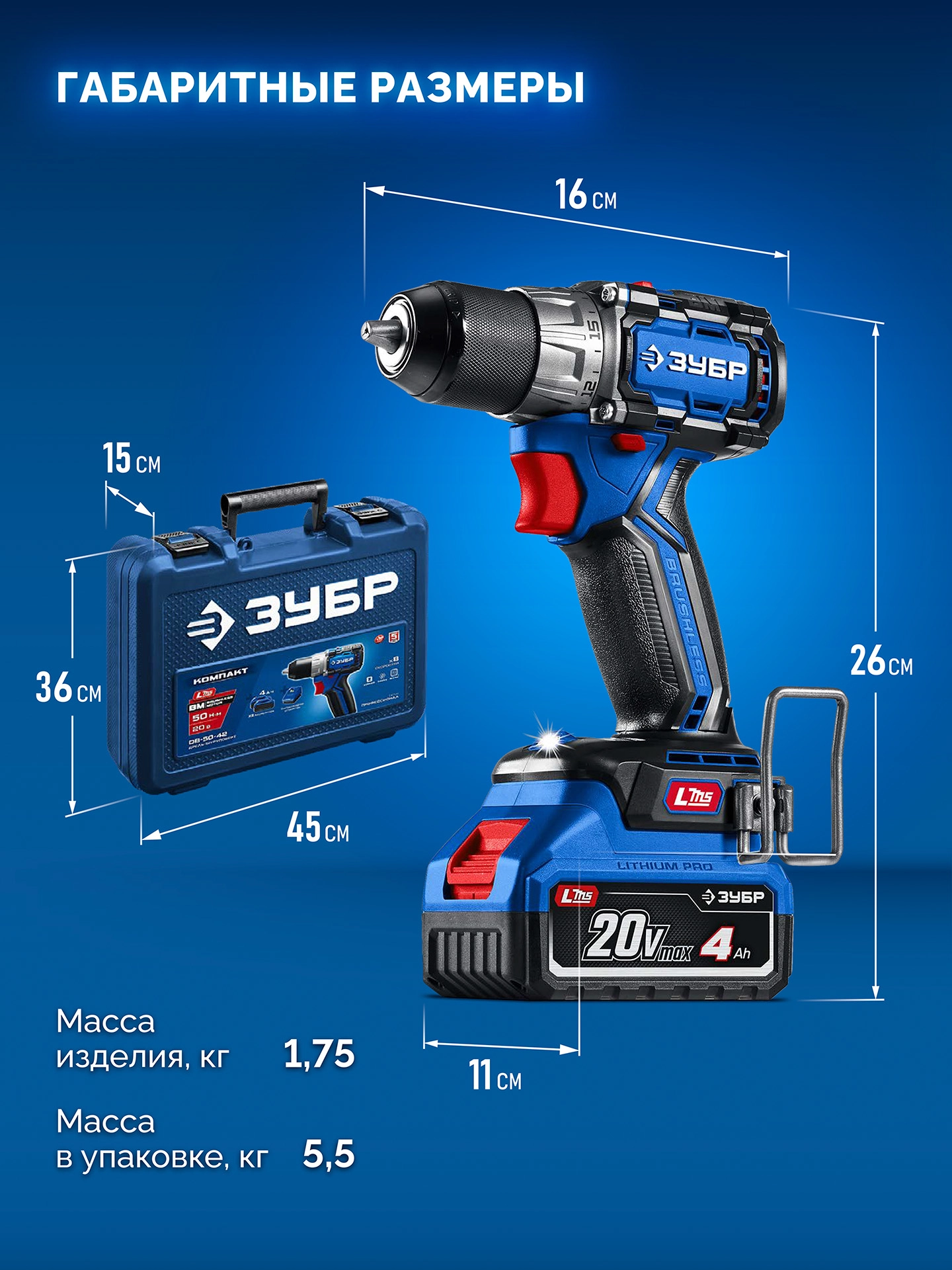 ПроизводителиДрель-шуруповерт аккум. DB-50-42 (LMS) (20.0 В, 2 акк. х 4.0 A/h Li-Ion, 50 Нм, чем.) ЗУБР