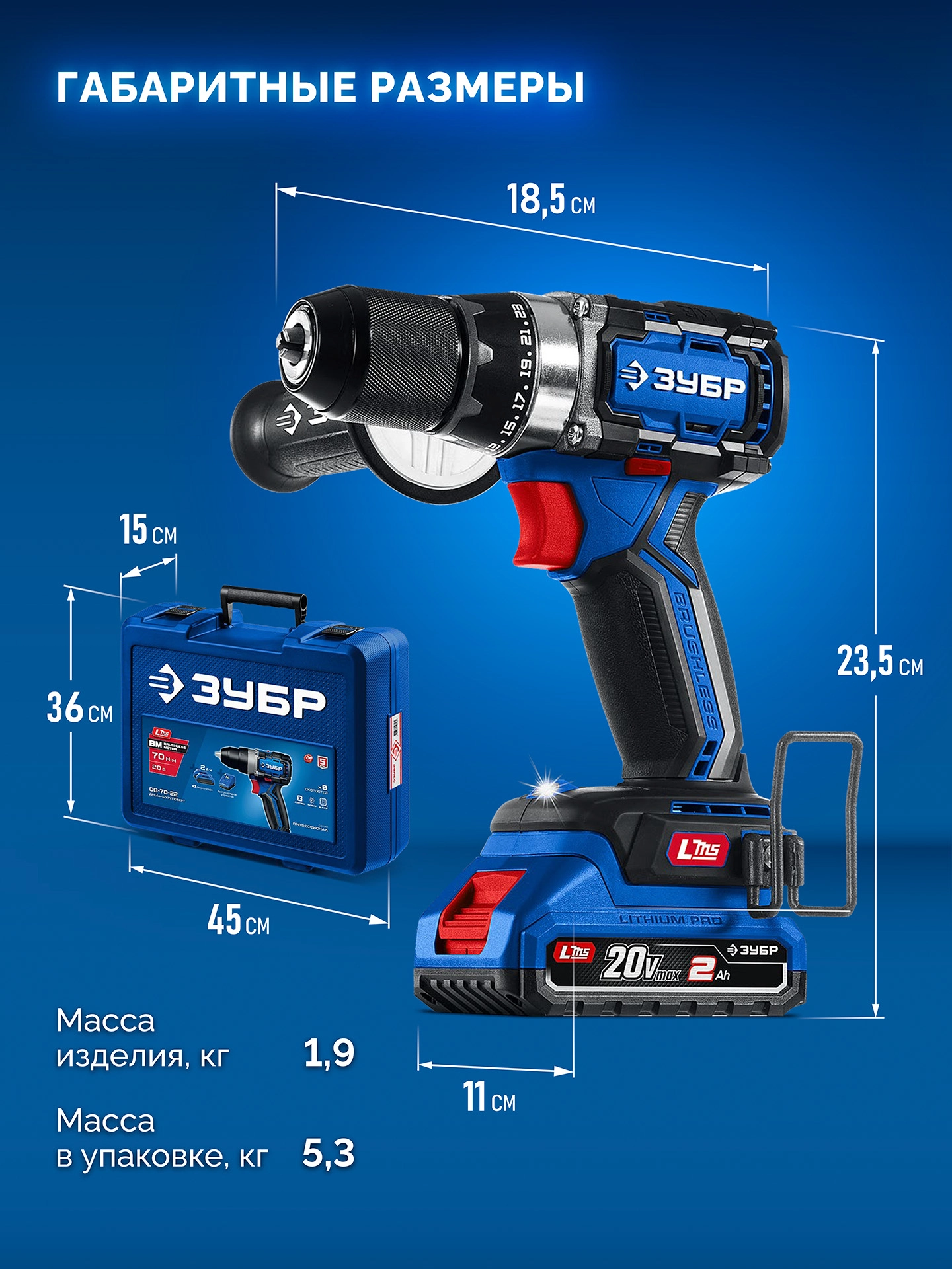 ПроизводителиДрель-шуруповерт аккум. DB-70-22 (LMS) (20.0 В, 2 акк. х 2.0 A/h Li-Ion, 70 Нм, чем.) ЗУБР