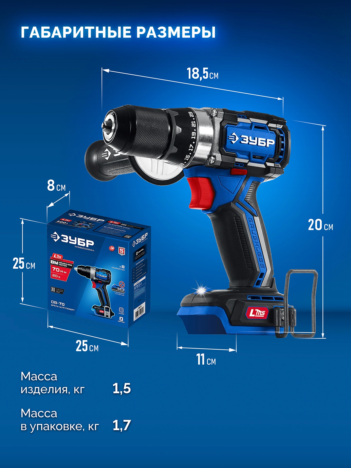 ПроизводителиДрель-шуруповерт аккум. DB-70 (LMS) (20.0 В, без АКБ и ЗУ, 70 Нм, кор.) ЗУБР