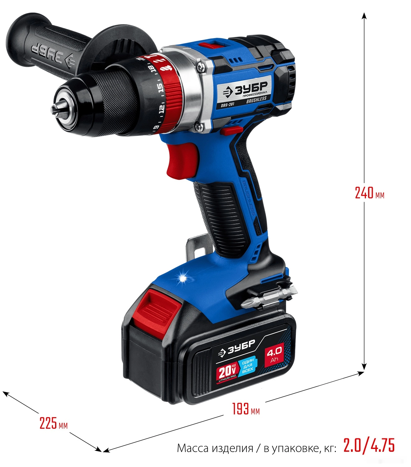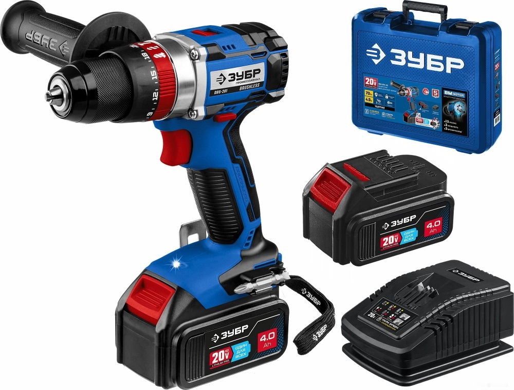 ХарактеристикиАртикул DBS-201-42Бренды ЗубрСтрана производства КитайАккумуляторная система ЗУБР Li-Ion PRO 20BТип ударная дрель-шуруповертТип патрона быстрозажимнойКоличество скоростей 2Макс. крутящий момент 70Мин. крутящий момент, Н/м 35Число оборотов холостого хода 1800Напряжение аккумулятора 20Макс. диаметр сверления, дерево 45Макс. диаметр сверления, металл 13Скорость вращения 1800Емкость аккумулятора 4Время зарядки 30Индикация заряда батареи ДаТип аккумулятора Li-IonКейс в комплекте естьБыстросменный патрон НетАккумулятор в комплекте ДаВес 2000Питание аккумуляторКрутящий момент 70Кейс ДаДлина 370Ширина 110Блокировка шпинделя естьВысота 310Реверс естьMax диаметр сверления древесины 45Подсветка естьMax диаметр сверления стали 13Бесщеточный двигатель ДаМин. Диаметр патрона 1.5Время зарядки 30Макс. Диаметр патрона 13Способ крепления аккумулятора слайдерСкорость вращения на первой скорости 500Фиксация кнопки включения НетРегулировка крутящего момента 22Регулировка оборотов ДаОписание товара обновлено 28.01.2026 17:02:04Применение