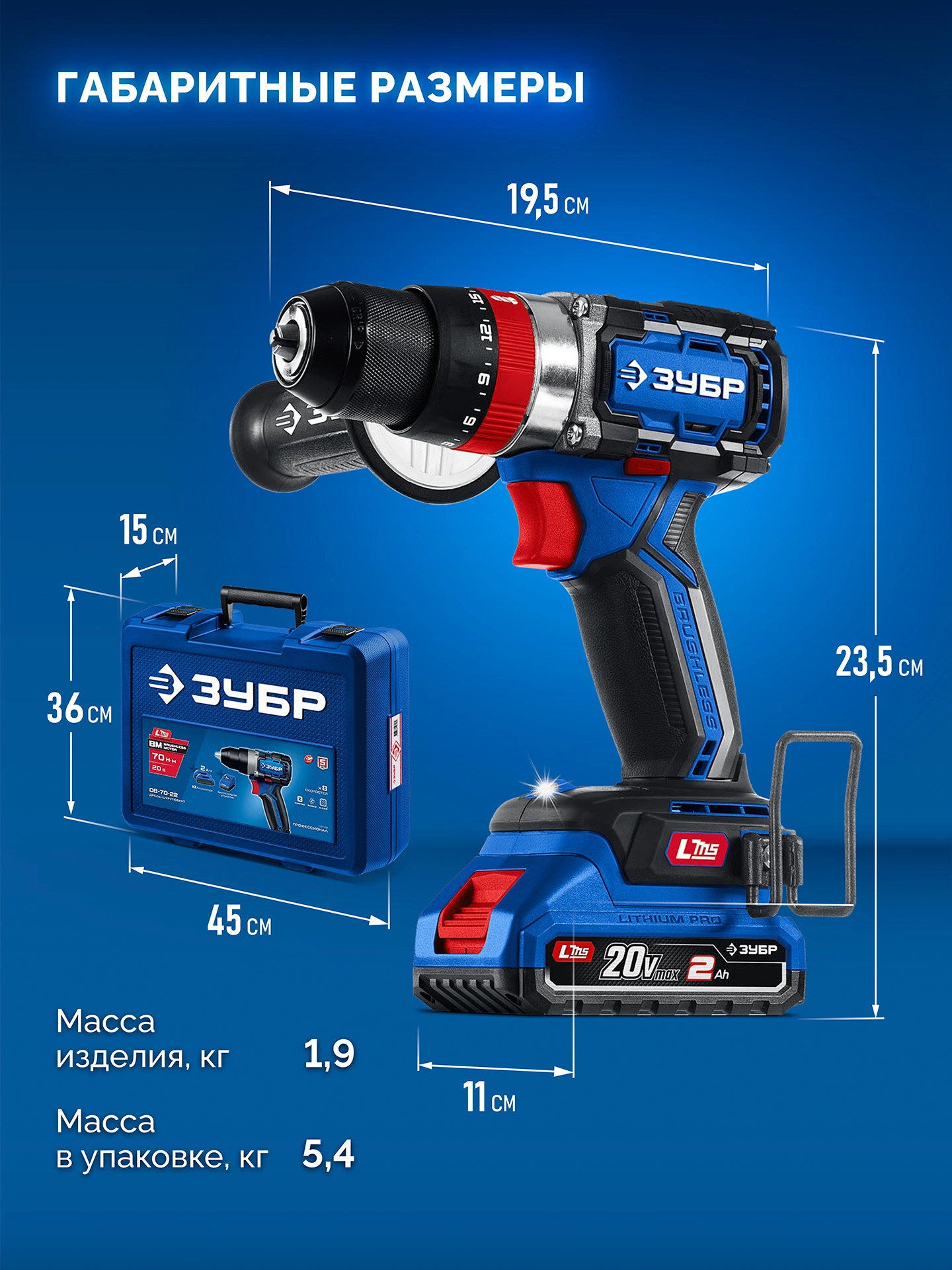 Высокотехнологичная модель в новой линейке аккумуляторного инструмента ЗУБР серии LMS Дрель-шуруповерт профессионального уровня с передовым BRUSHLESS двигателем.