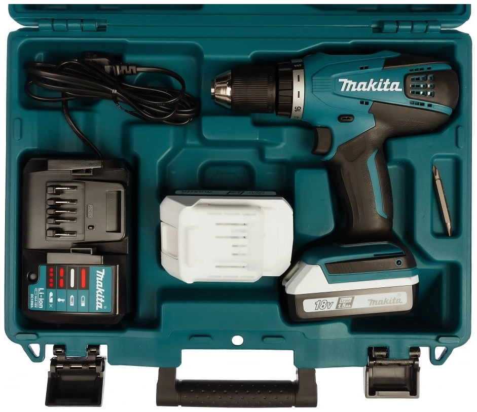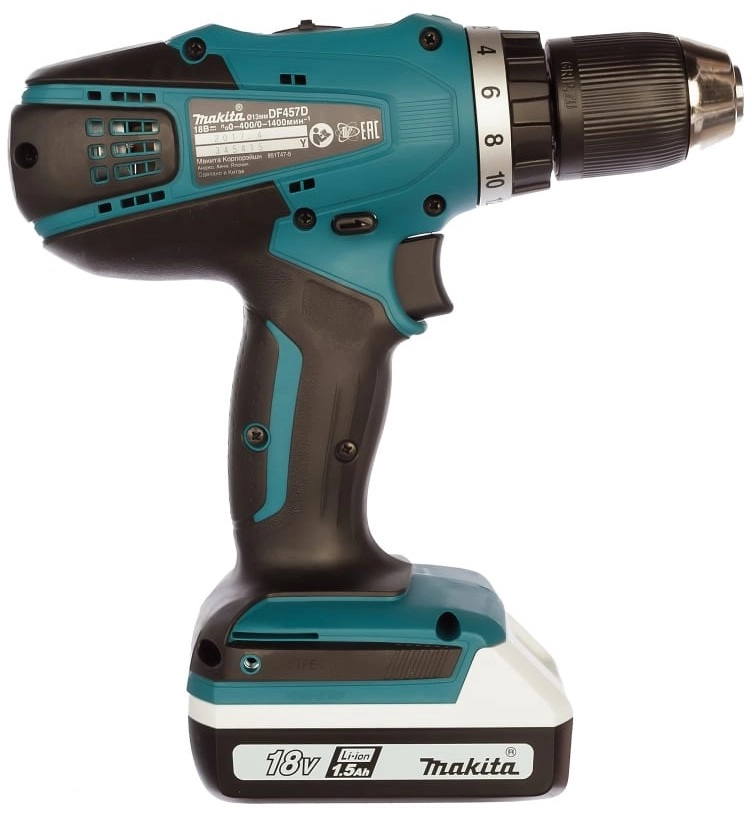 - Чемодан - для удобства хранения и транспортировки аккумуляторной дрели-шуруповерт Makita DF457DWE.