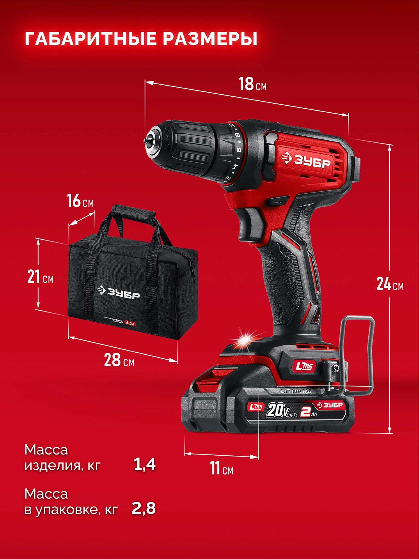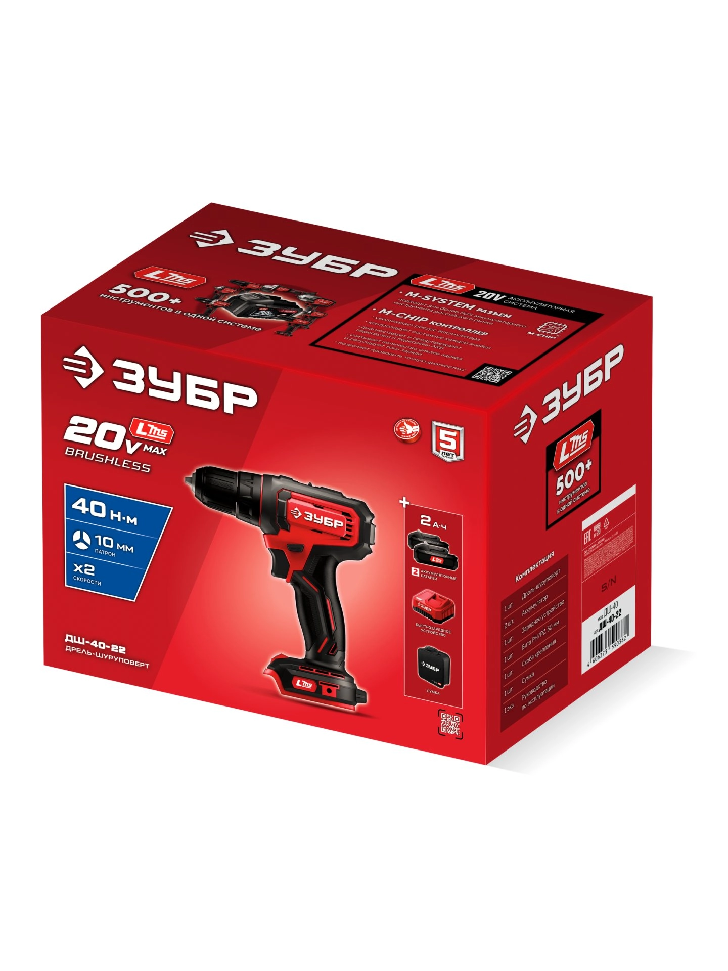 ПроизводителиДрель-шуруповерт аккум. ДШ-40-22 (LMS) (20.0 В, 2 акк. х 2 А/h Li-Ion, 40 Нм, сум.) ЗУБР