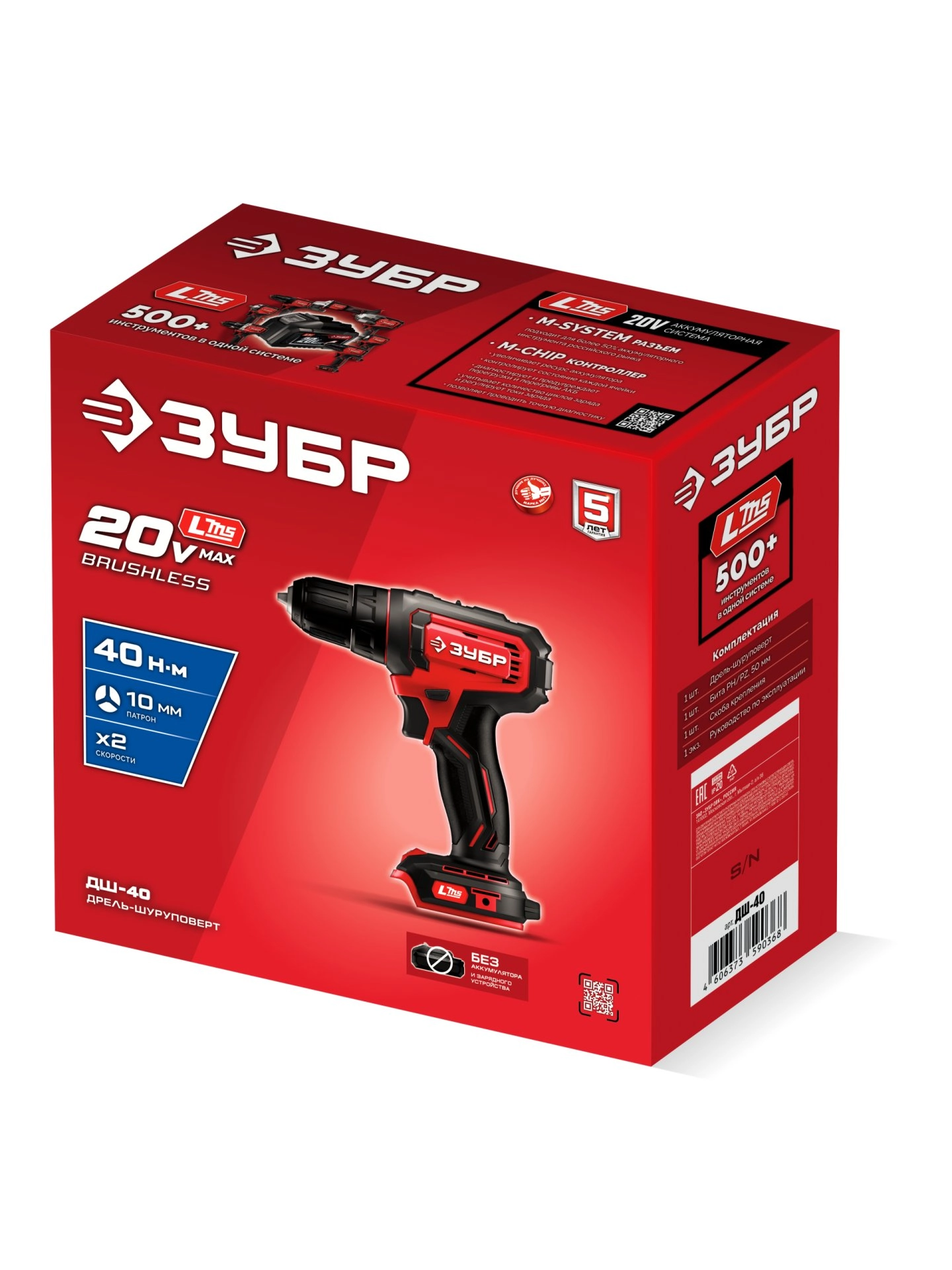 ПроизводителиДрель-шуруповерт аккум. ДШ-40 (LMS) (20.0 В, без АКБ и ЗУ, 40 Нм, кор.) ЗУБР
