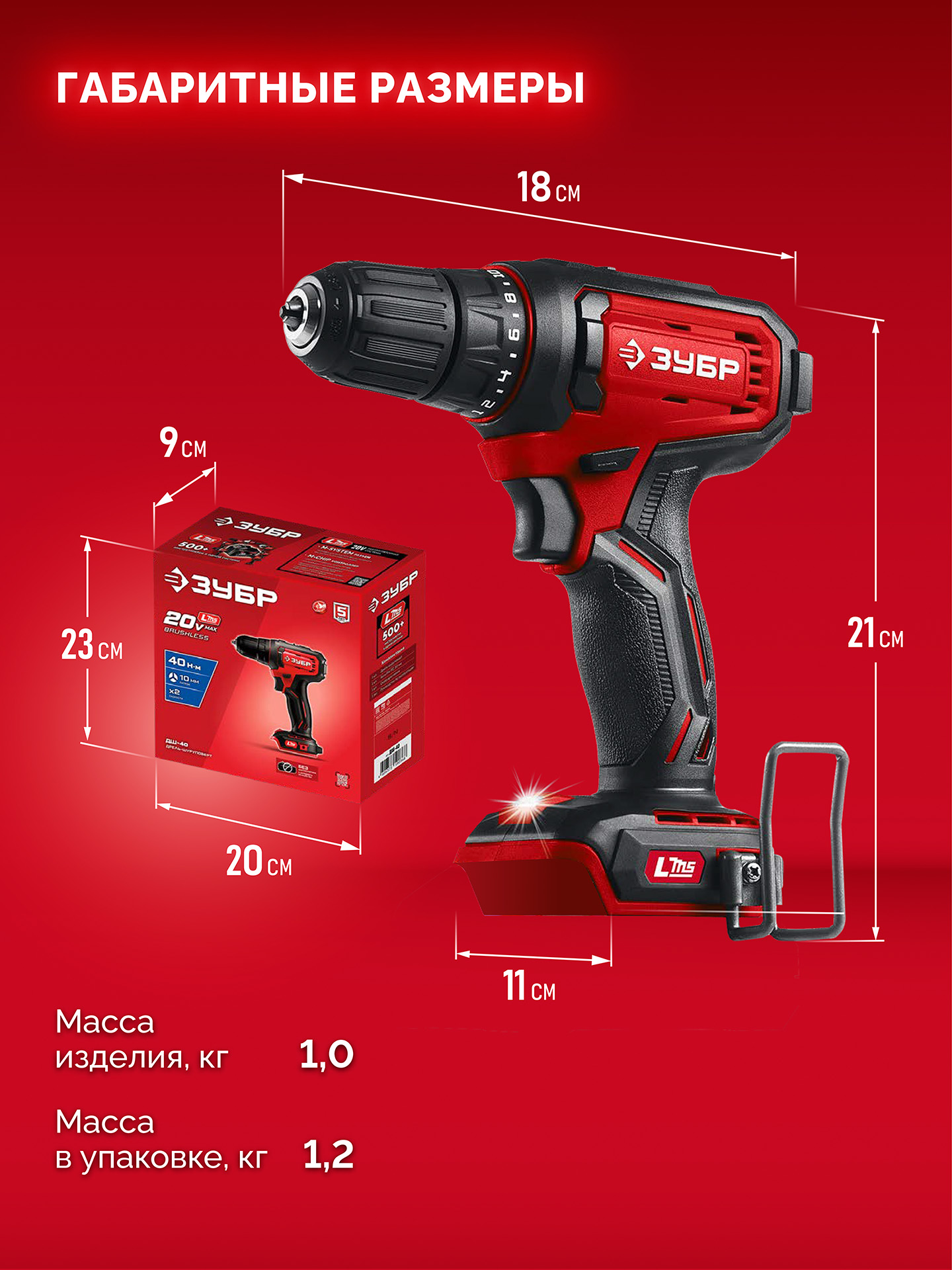 ПроизводителиДрель-шуруповерт аккум. ДШ-40 (LMS) (20.0 В, без АКБ и ЗУ, 40 Нм, кор.) ЗУБР