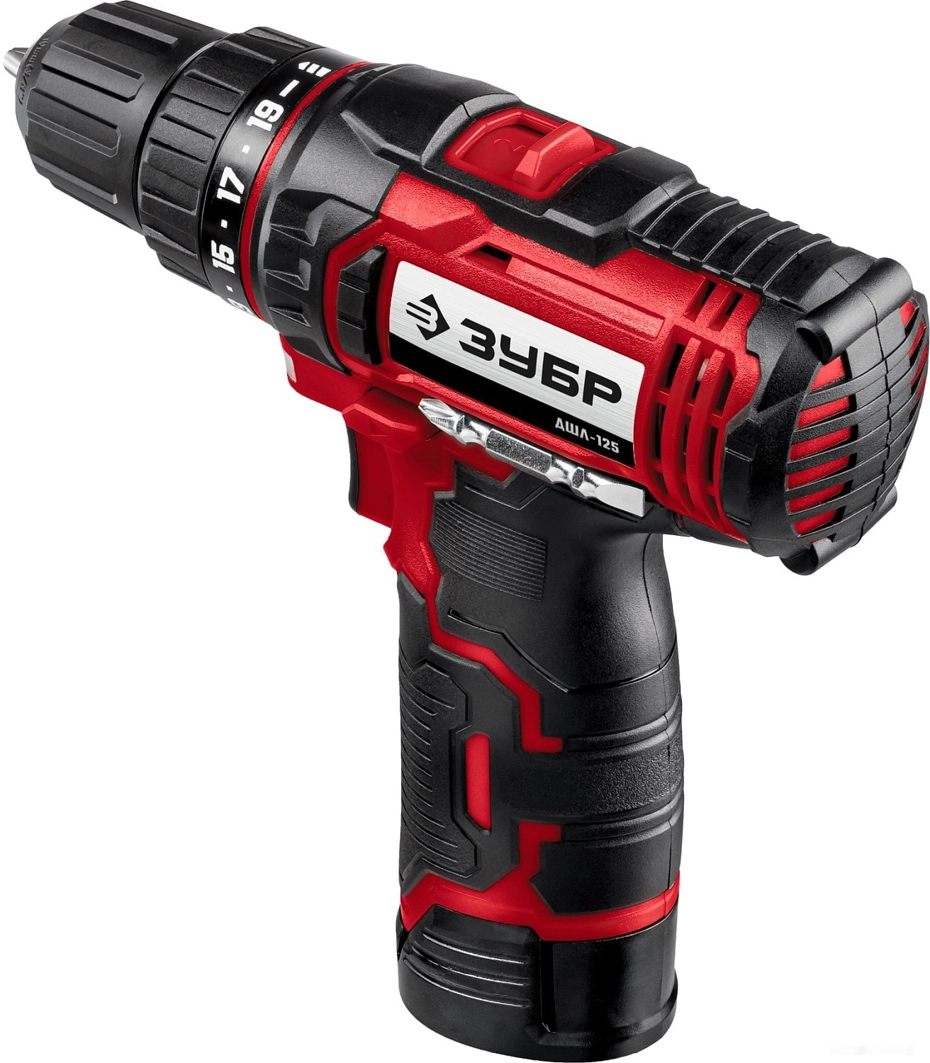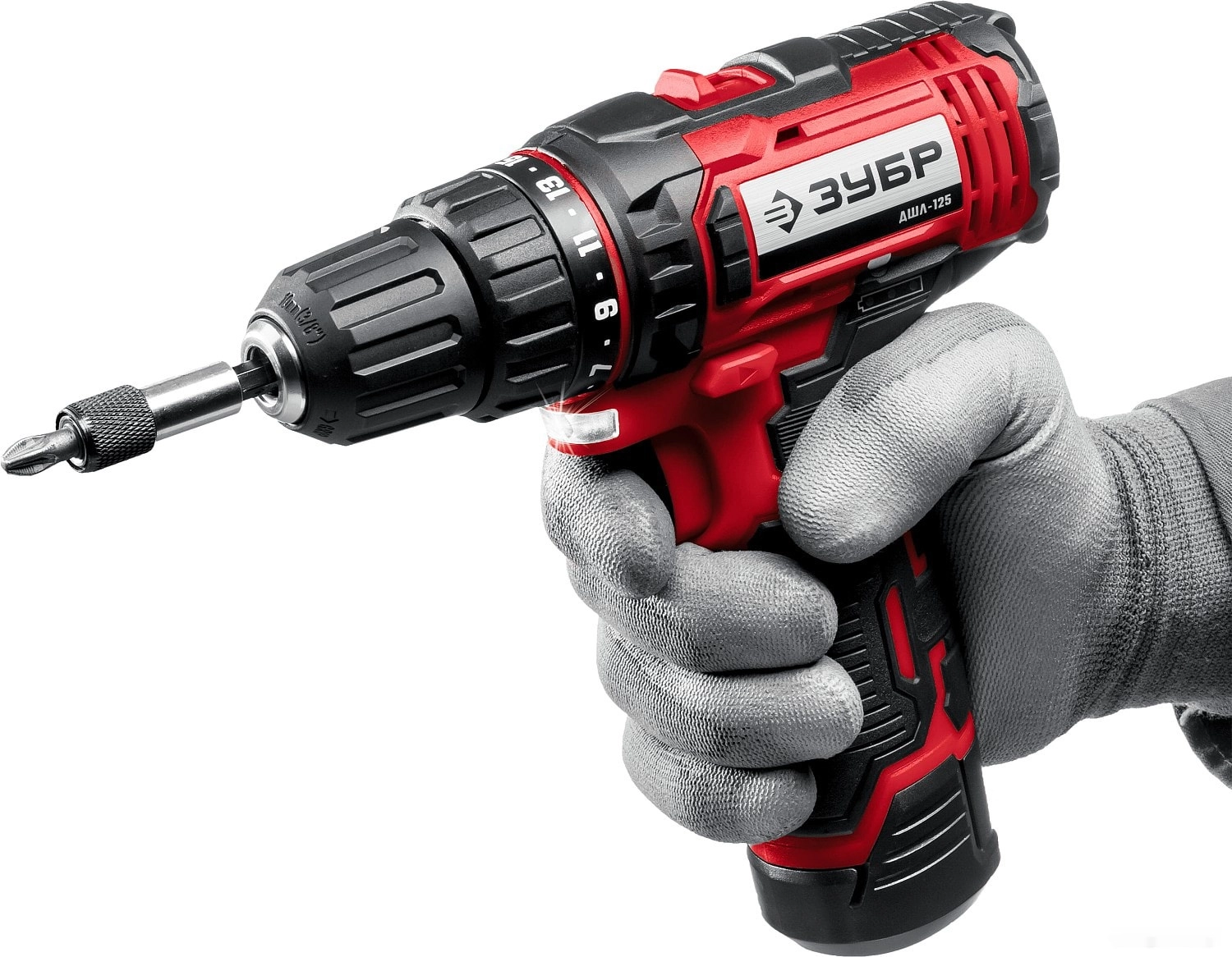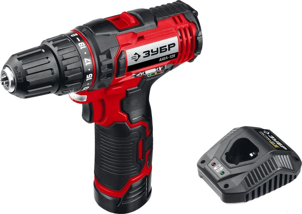 ХарактеристикиАртикул ДШЛ-125-21Бренды ЗубрСтрана производства КитайАккумуляторная система ЗУБР Li-Ion C1 12ВТип дрель-шуруповертТип патрона быстрозажимнойКоличество скоростей 2Макс. крутящий момент 25Мин. крутящий момент, Н/м 15Число оборотов холостого хода 1300Напряжение аккумулятора 12Макс. диаметр сверления, дерево 21Макс. диаметр сверления, металл 10Скорость вращения 1300Емкость аккумулятора 2Индикация заряда батареи ДаТип аккумулятора Li-IonКейс в комплекте нетБыстросменный патрон НетАккумулятор в комплекте ДаВес 1100Питание аккумуляторКрутящий момент 30Длина 275Ширина 82Блокировка шпинделя естьВысота 242Реверс естьMax диаметр сверления древесины 21Подсветка естьMax диаметр сверления стали 10Бесщеточный двигатель НетМин. Диаметр патрона 0.8Макс. Диаметр патрона 10Способ крепления аккумулятора обоймаФиксация кнопки включения НетРегулировка крутящего момента 20Регулировка оборотов ДаОписание товара обновлено 08.12.2025 14:17:15Аккумуляторная дрель шуруповерт ЗУБР ДШЛ-125-21, предназначена для сверления отверстий в различных материалах (при установке сверла), а также для вкручивания/выкручивания шурупов, саморезов и винтов (при установке соответствующих бит). Высокий крутящий момент при широком диапазоне оборотов благодаря конструкции редуктора. Бесключевой одномуфтовый патрон для максимальной простоты и скорости замены расходного инструмента. Двухскоростной планетарный редуктор позволяет, как заворачивать с большим крутящим моментом, так и сверлить на высоких оборотах. Многофункциональный выключатель с электроникой обеспечивает: контроль и защиту батареи от глубокого разряда, перегрузки и перегрева (не требует дополнительной микросхемы в батарее); управление всеми режимами работы двигателя (старт, регулировка скорости, торможение, реверс); управление подсветкой. Встроенный в корпус магнитный держатель для бит позволяет всегда иметь их под рукой.