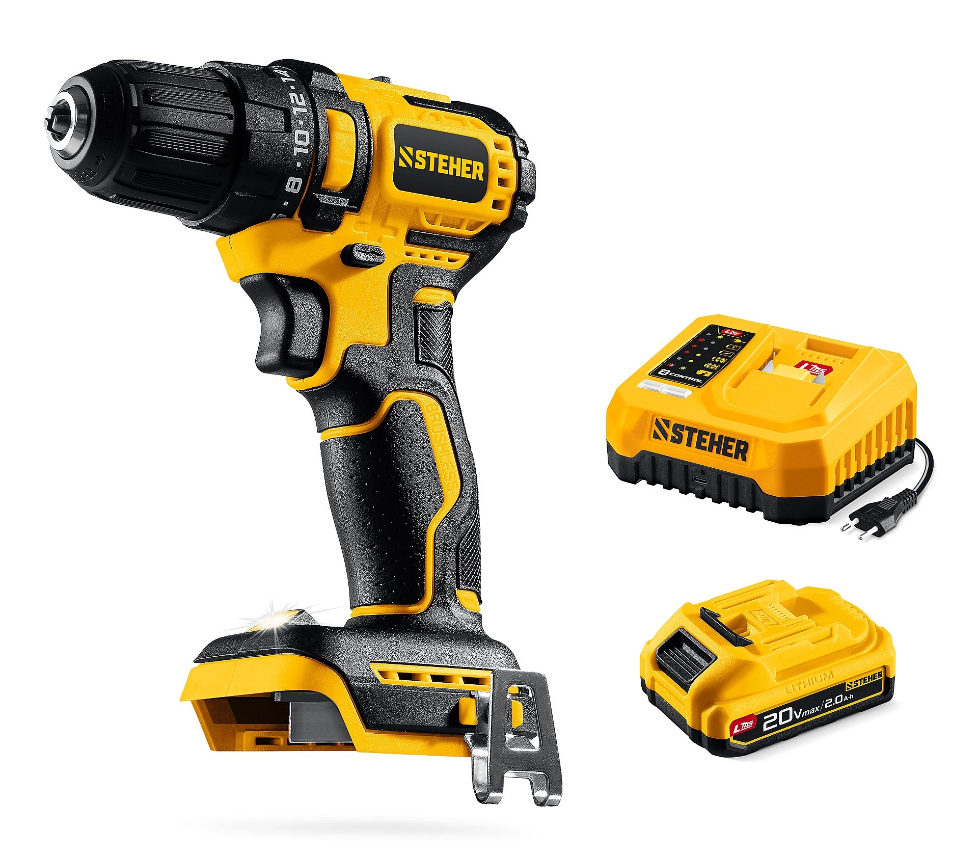 Бренд: STEHERБесщеточная дрель-шуруповерт STEHER обеспечивает как точное заворачивание маленьких саморезов, так и уверенное закручивание крупного крепежа до 8мм. Компактный размер и современный дизайн делают ее удобной для работы. Комплектация с аккумулятором позволяет начать работу сразу после покупки