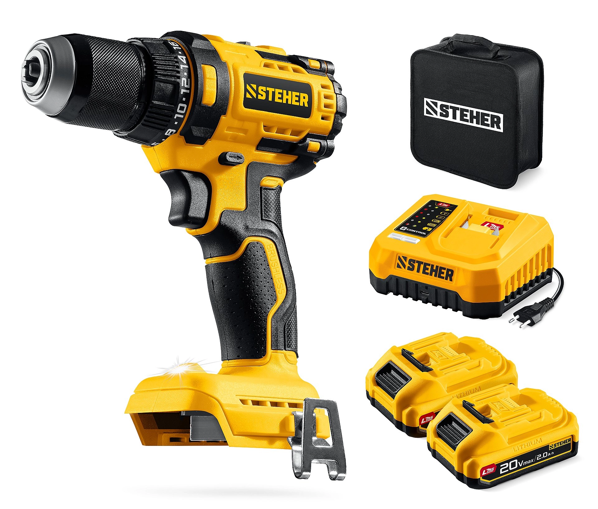 Бренд: STEHERБесщеточная дрель-шуруповерт STEHER системы LMS с увеличенным крутящим моментом предназначена для быстрого заворачивания саморезов до 8 мм диаметром и сверления отверстий до 30 мм в дереве. Длительная работа от одного заряда обеспечивается эффективным двигателем BRUSHLESS. Комплектация с двумя аккумуляторами позволяет работать практически без остановки